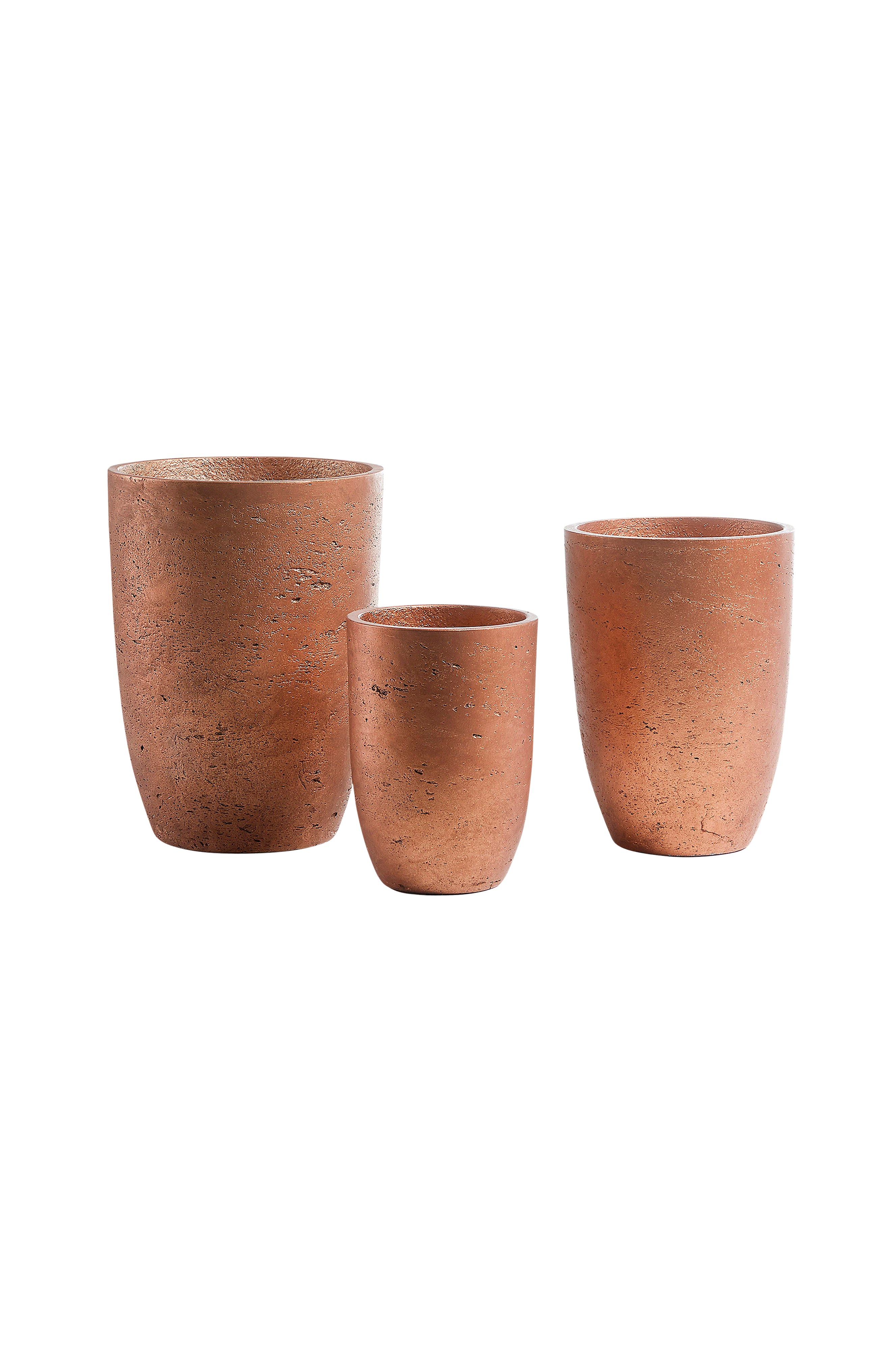 3 stk. krukker af cement i forskellige størrelser. Til brug indendørs og udendørs. Højde 27 / 23 / 18 cm. Diameter 20 / 17 / 13 cm.