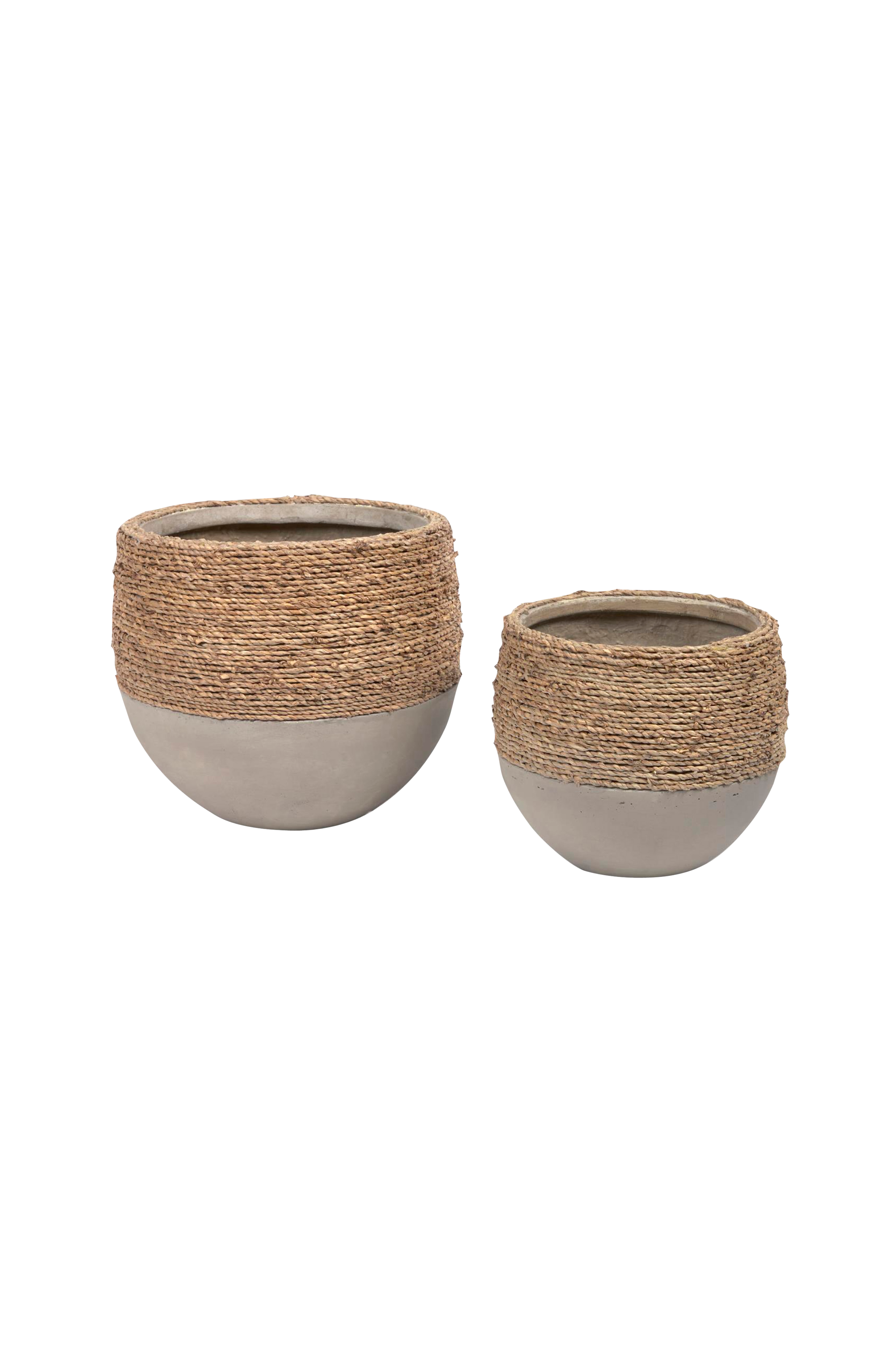 Hold dine planter med selskab i naturlige omgivelser takket være materialerne i Tamim krukker, som er lavet af håndflettet espartogræs med en indvendig belægning af cementpasta. Et unikt, håndlavet og holdbart design. Mål: stor krukke, diameter 33, højde 28 cm. Lille krukke diameter 26, højde 22 cm.