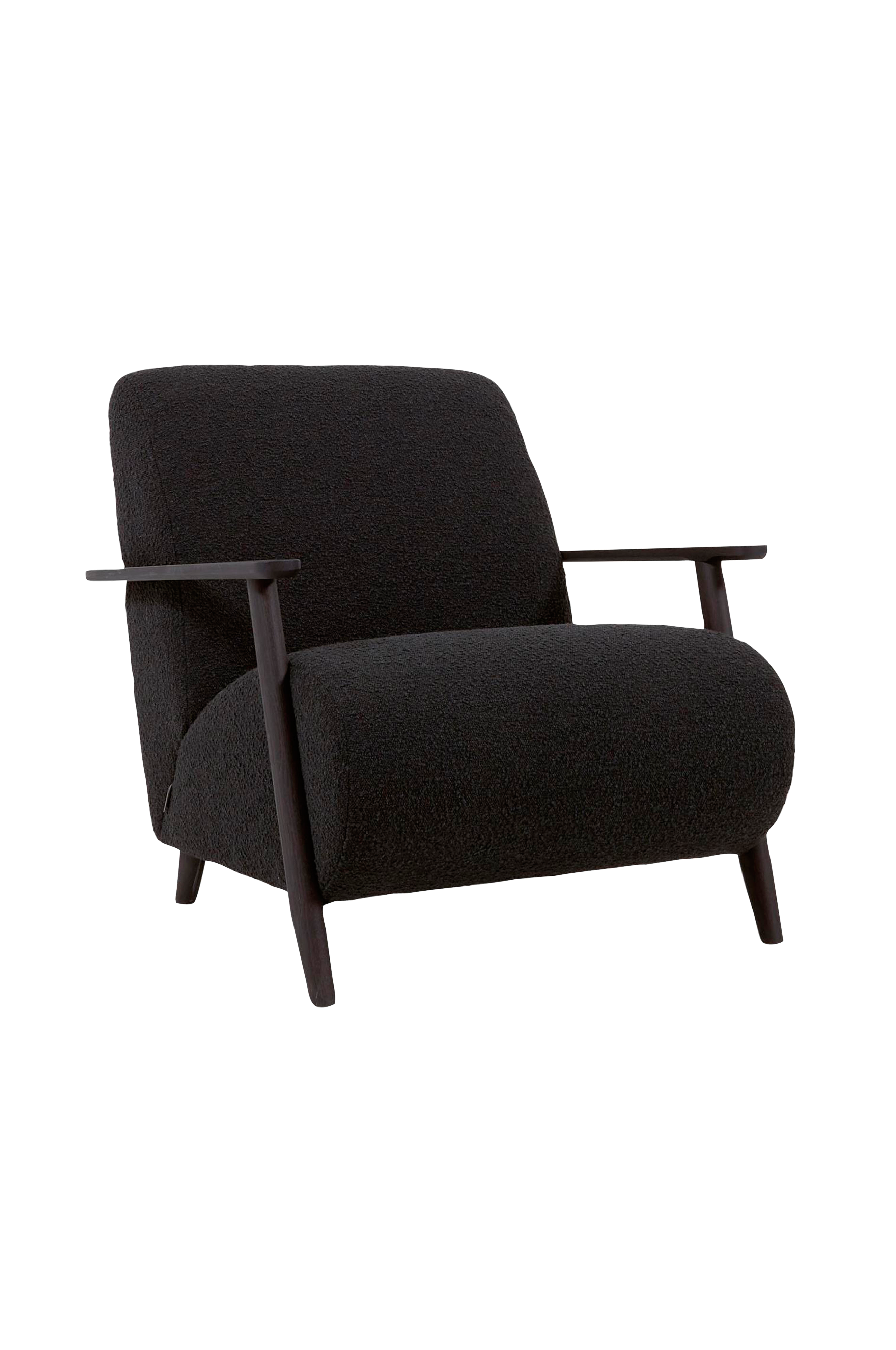 Stol med armlæn, med polstring og tekstilbetræk. Stol i massiv ask med wenge-finish.