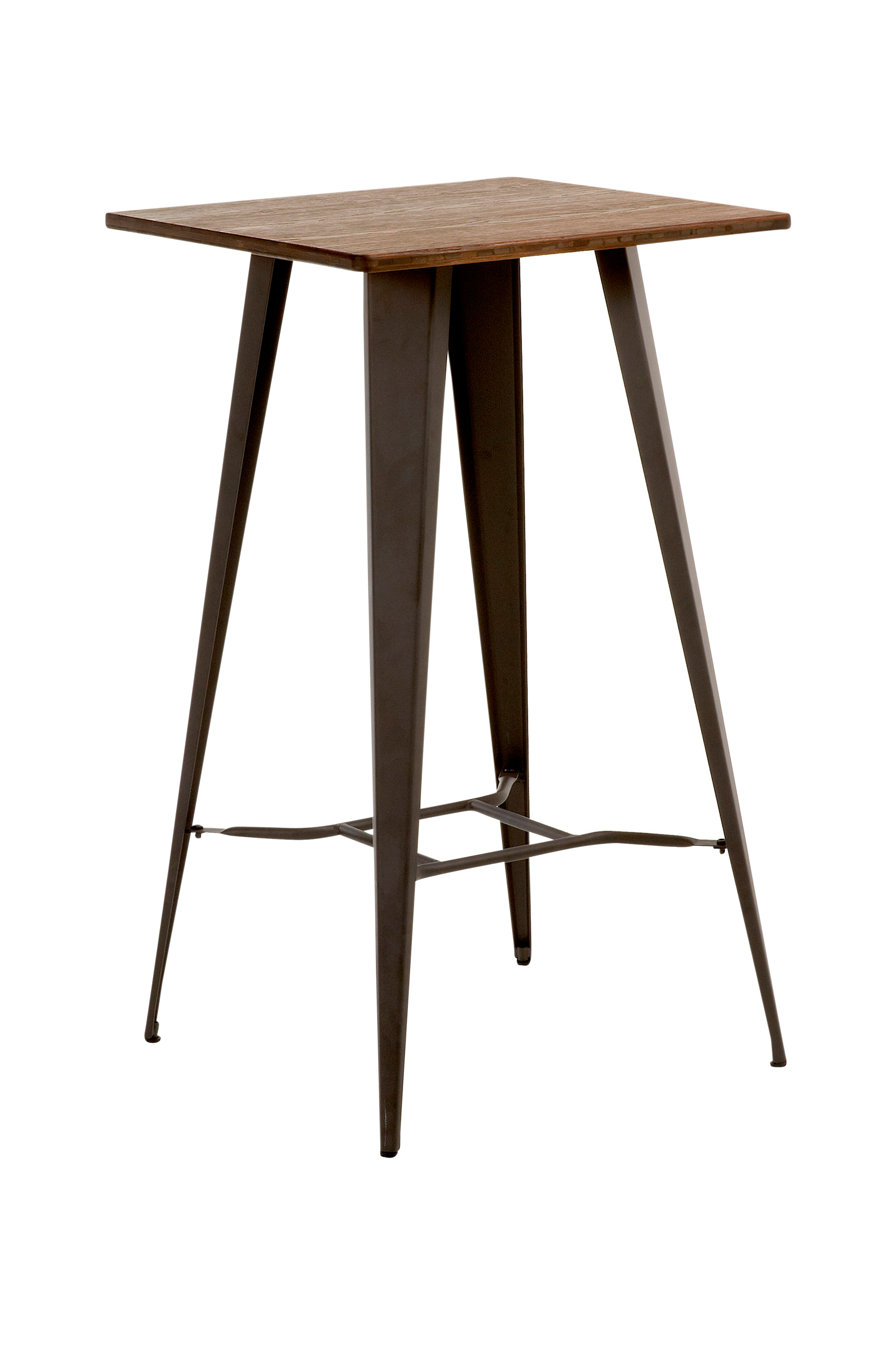 Bord med pulverlakerede stålben. Bordplade af træ som er behandlet til udendørs brug. Til anvendelse indendørs og udendørs.