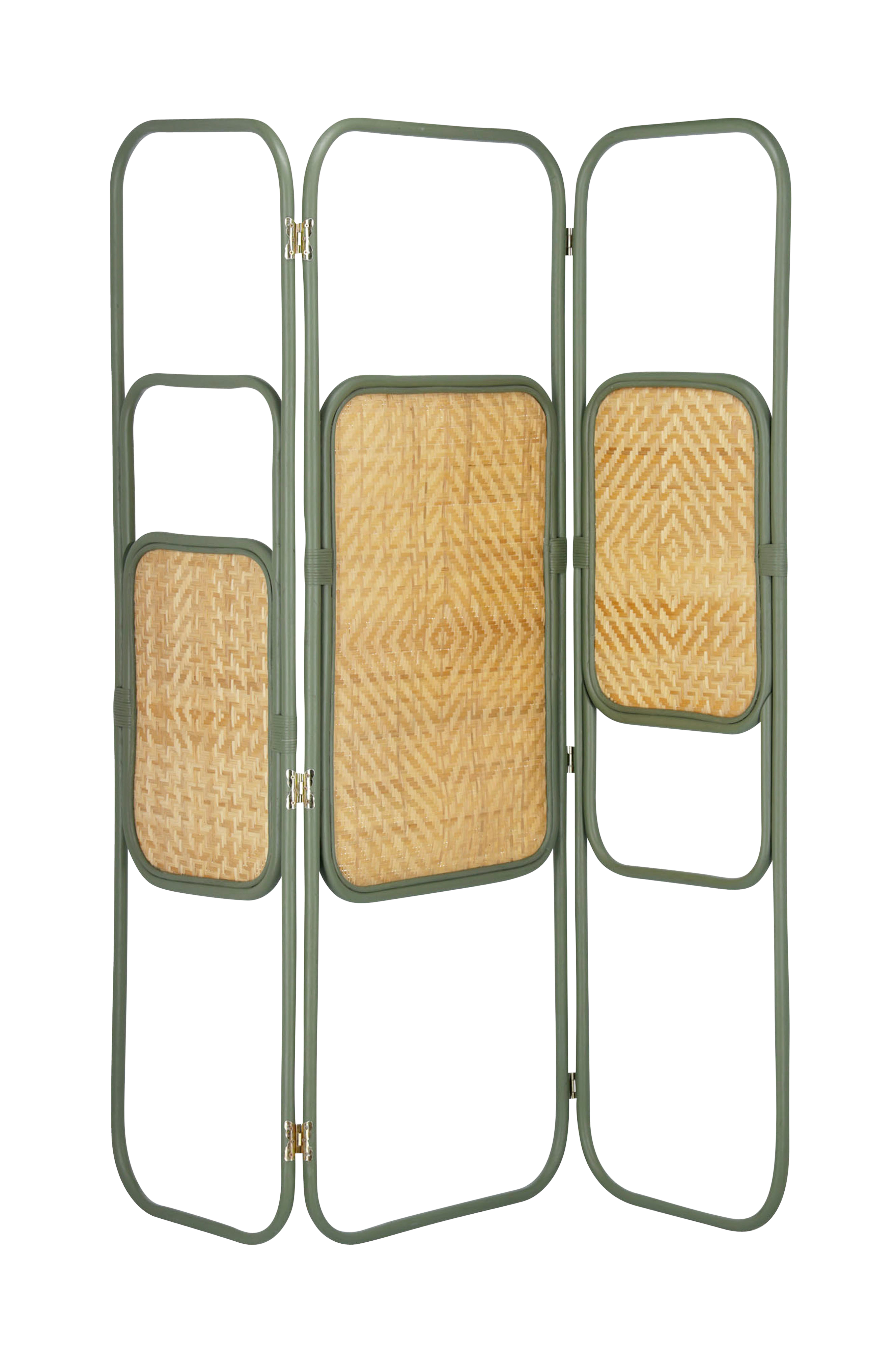 Margaret rumdeler er skabt af Kave Homes designteam. Hvert produkt er unikt, da det er fremstillet af rotting, et naturligt materiale som er både formet og vævet i hånden. Eftersom stellet er malet grønt, bliver rottingens fletmønster i naturfarvet mere fremtrædende. Der findes to knager på stellet, hvilket er perfekt, hvis du vil bruge den, når du skifter tøj. Hvis du har brug for at pakke den væk, kan den foldes helt sammen.