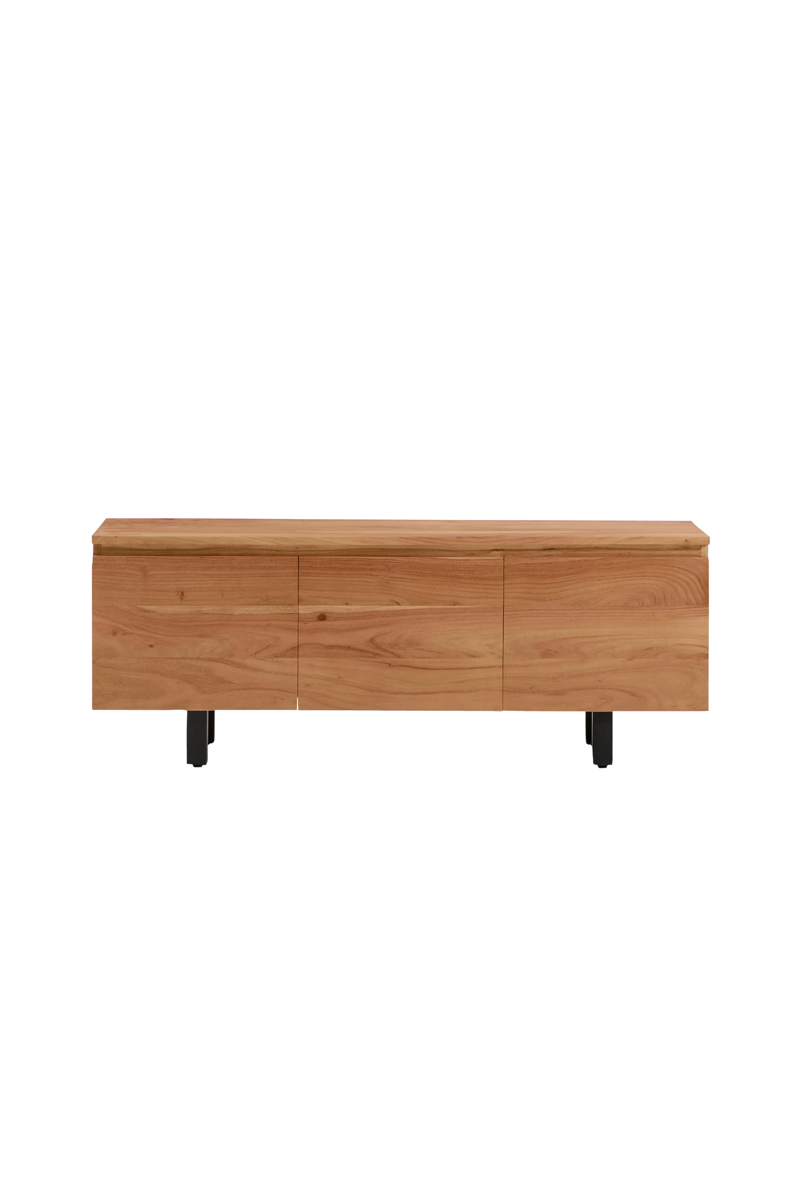 uxue-kollektionen omdefinerer funktionalitet og stil i ethvert rum med sit rene, moderne design. Det massive akacietræ med sin blegede finish giver en unik varme og fremhæver træets årer, hvilket tilfører rummet lys og raffinement. Hver dør er perfekt integreret i møblet, hvilket skaber et harmonisk og minimalistisk look, der passer til enhver type indretning, fra den mest moderne til den mest klassiske. De sortlakerede stålben giver en elegant og subtil kontrast, hæver strukturen og sikrer stabilitet og holdbarhed. Benene er justerbare, hvilket gør det muligt at udligne eventuelle ujævnheder i gulvet og sikre, at tv-bordet altid står i perfekt vater. Dette tv-bord er designet til at tilpasse sig dine behov og har huller på bagsiden, så du kan organisere og føre kablerne til dine elektroniske enheder igennem, holde det pænt og bevare rummets æstetik. Soft-close-hængslerne giver komfort og sikkerhed, hver gang dørene åbnes og lukkes, og beskytter både møblet og dets indhold. Dette tv-bord er den perfekte løsning til dem, der er på udkig efter opbevaringskapacitet, tidløst design og robusthed i et enkelt stykke, hvilket gør det til den ubestridte hovedperson i ethvert rum. Produktets bredde: 150 cm. Produktets dybde: 40 cm.