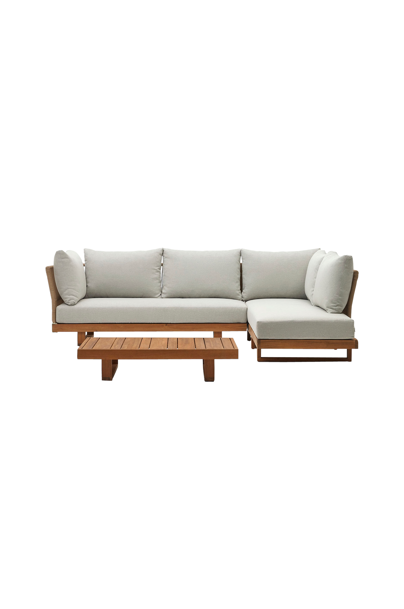 Den perfekte udendørs stue findes, og raco-sættet er det: en rummelig 5-personers sofa med pude og sofabord inkluderet. Det er også lavet af massivt akacietræ, så du kan nyde dine dage i solen uden bekymringer. Produktets bredde: 265 cm. Produktdybde: 200 cm.
