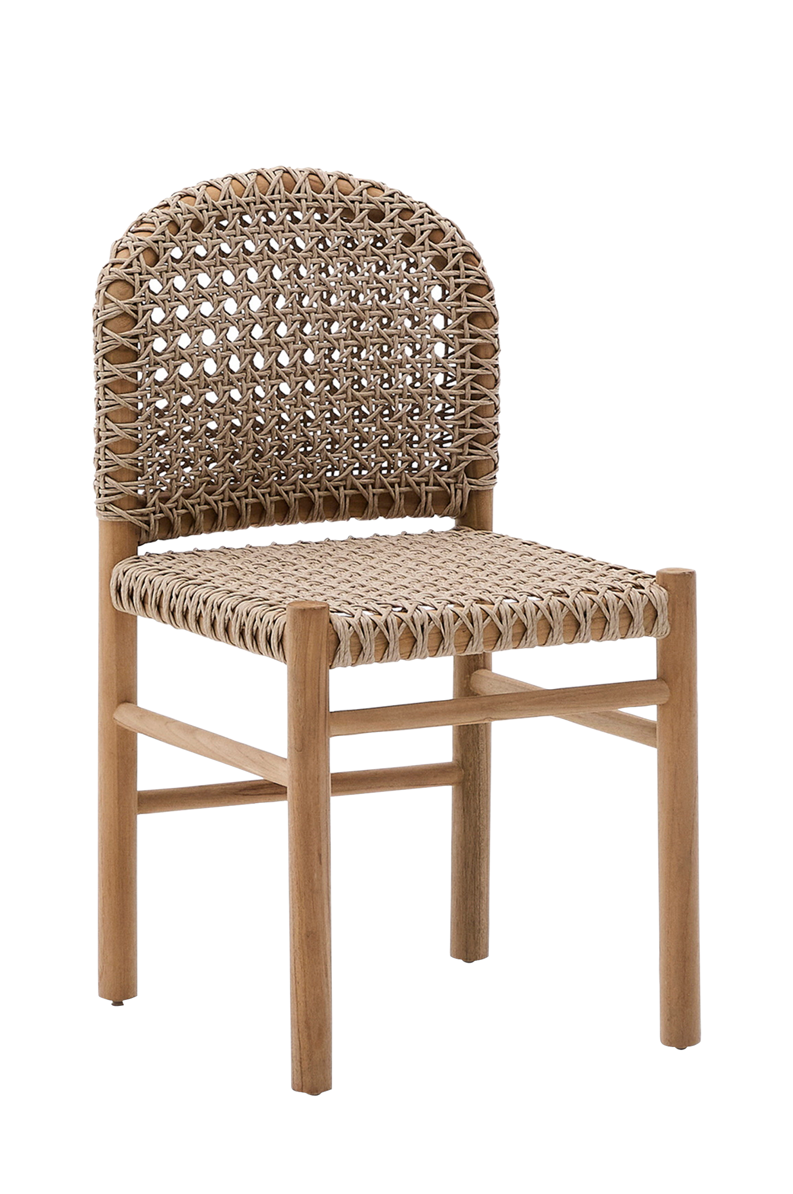 Tavira-stolen kombinerer varmen fra massivt teaktræ med raffinementet fra uv-resistent vævet rebsnor. Teakstrukturen giver enestående holdbarhed og unik skønhed, hvor hvert stykke har sine egne unikke toner og teksturer. Det omhyggeligt håndvævede sæde og ryglæn giver ikke kun ergonomisk komfort, men sikrer også modstandsdygtighed og stabilitet både indendørs og udendørs. For at bevare dens egenskaber anbefaler vi at anvende sterina wood protector mindst to gange om året. På den måde kan du nyde det upåklagelige design i alle miljøer. Produktets bredde: 45 cm. Produktets dybde: 50 cm.