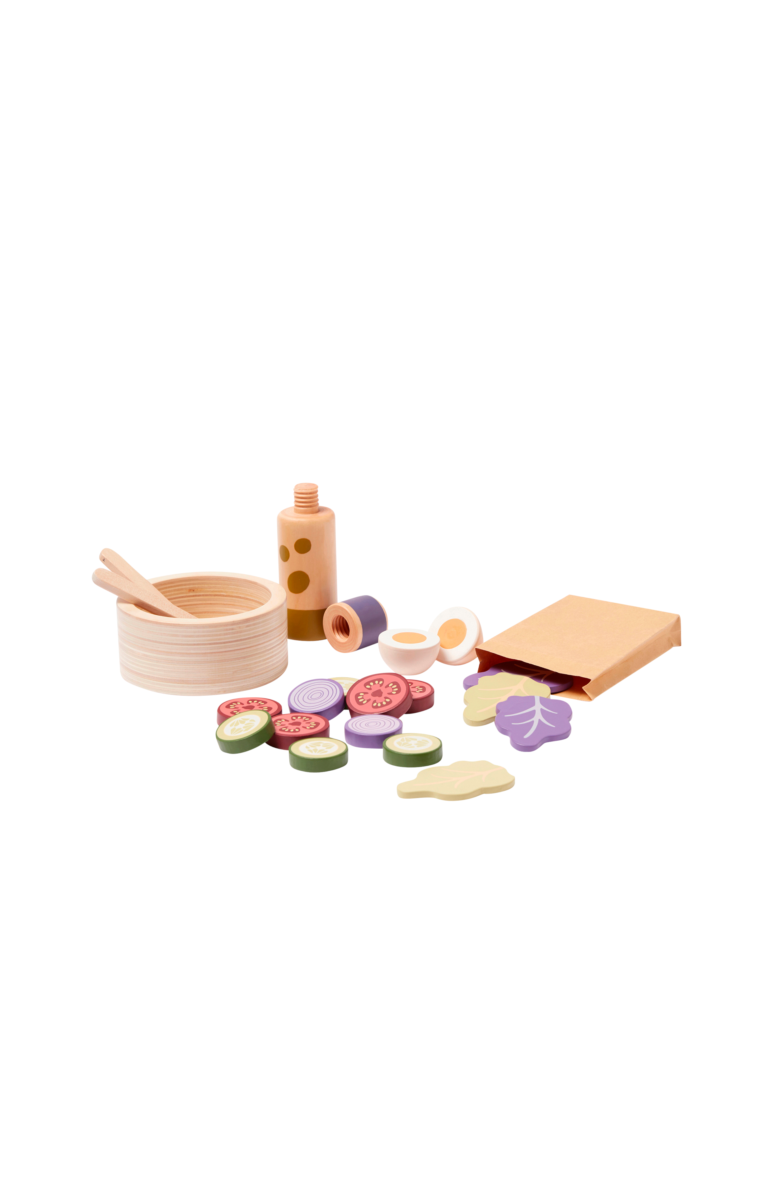 En perfekt salatskål i træ når det er tid til at lege restaurant.
