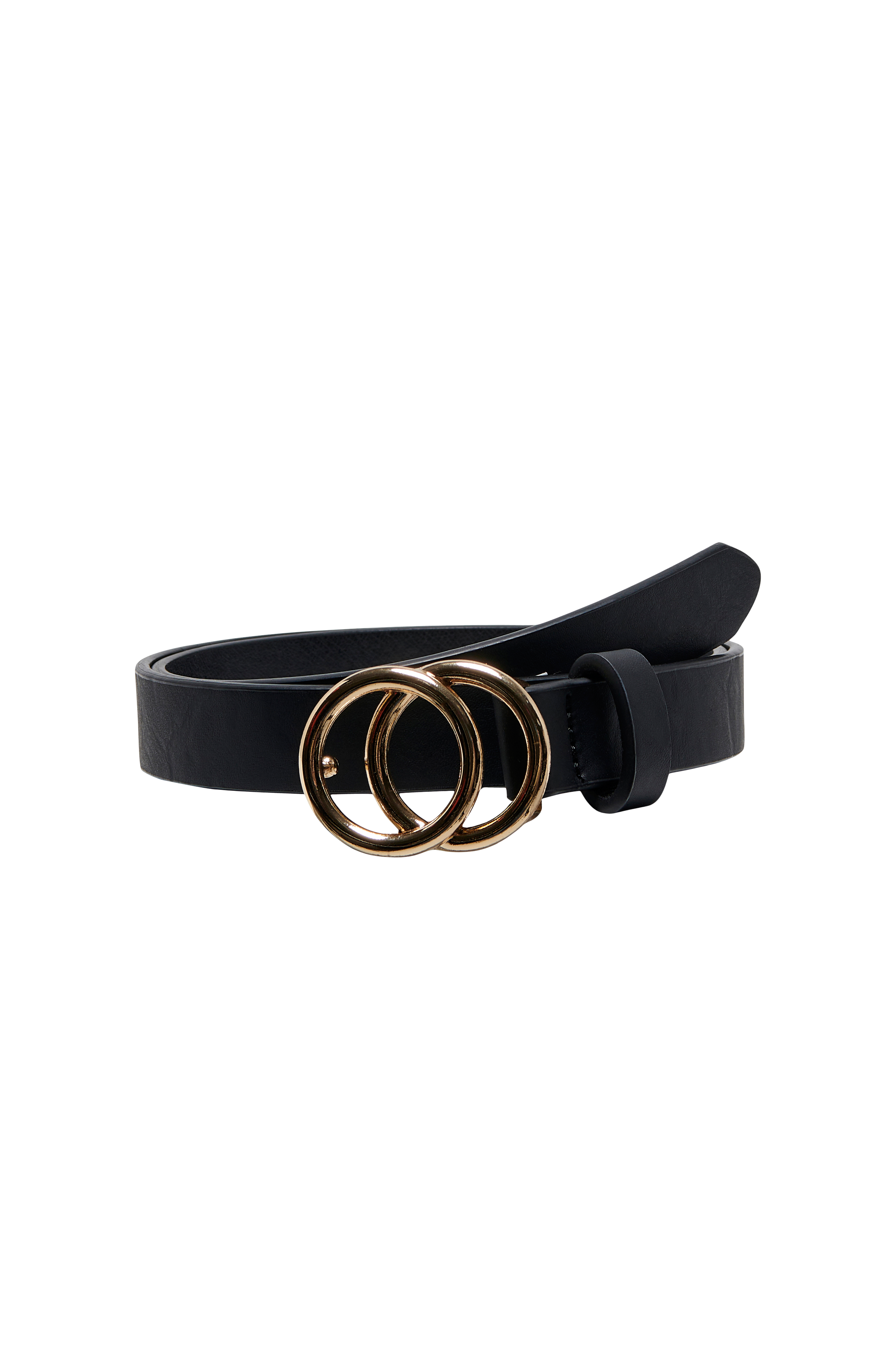 • Bælte i imiteret læder med dekorative metalringe foran• Justérbar længde
