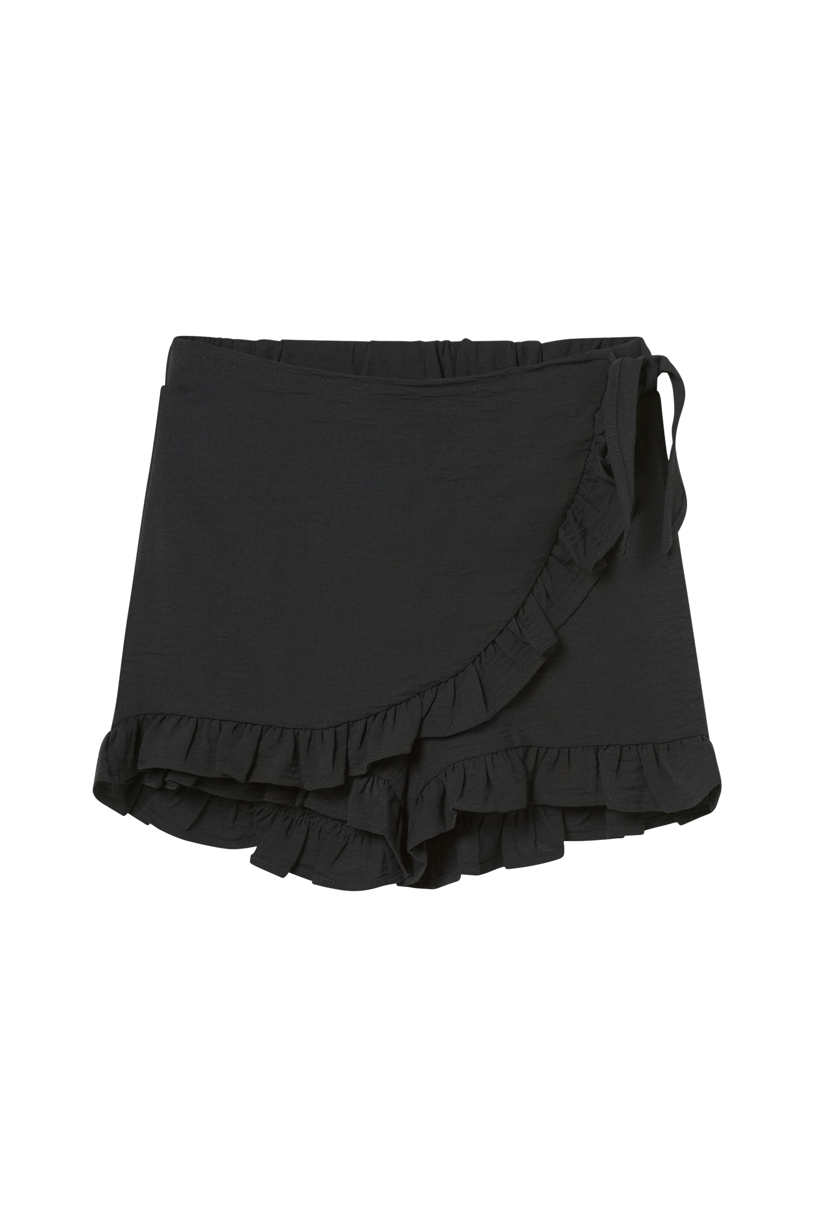 • Buksenederdel med slå-om design• Volanter foran og ved enden af benene• Elastik bagpå ved taljen• Bindebånd i siden