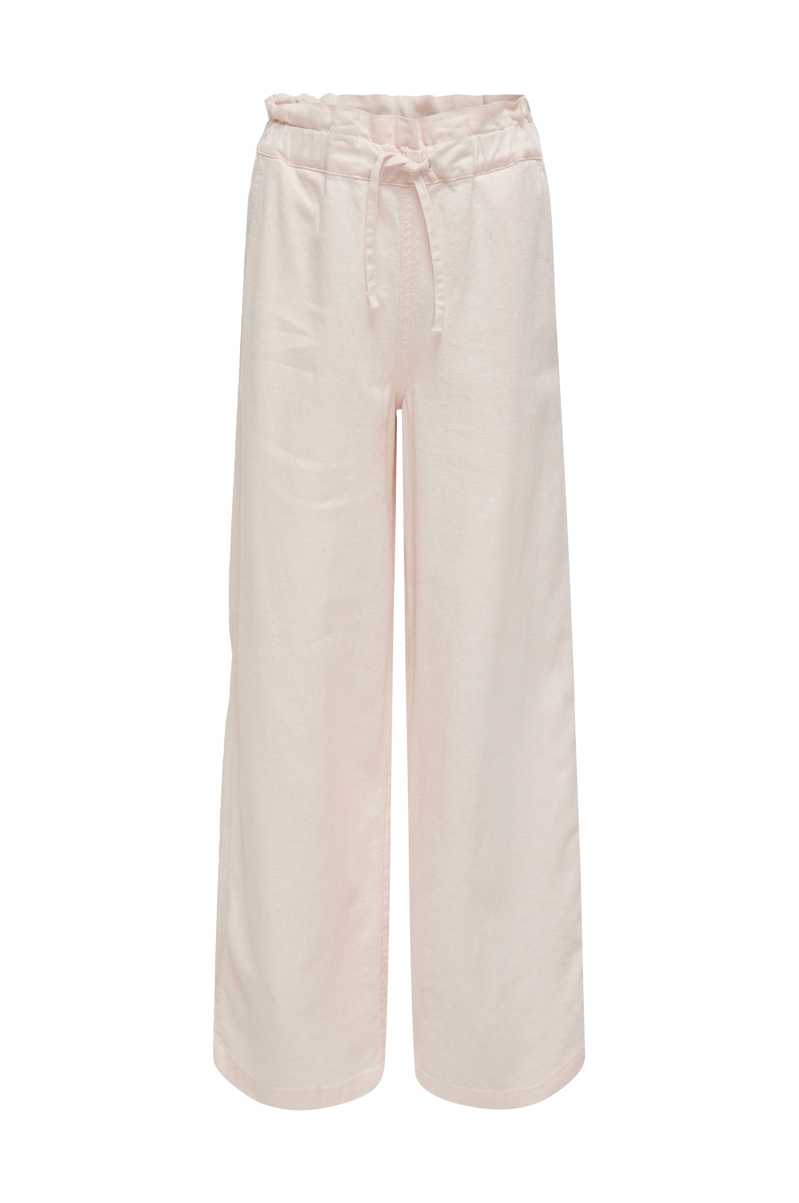 • Bukser i hørblanding• Elastisk, justérbar talje med volant og bindebånd• Brede ben• Lommer i siderne• En baglomme