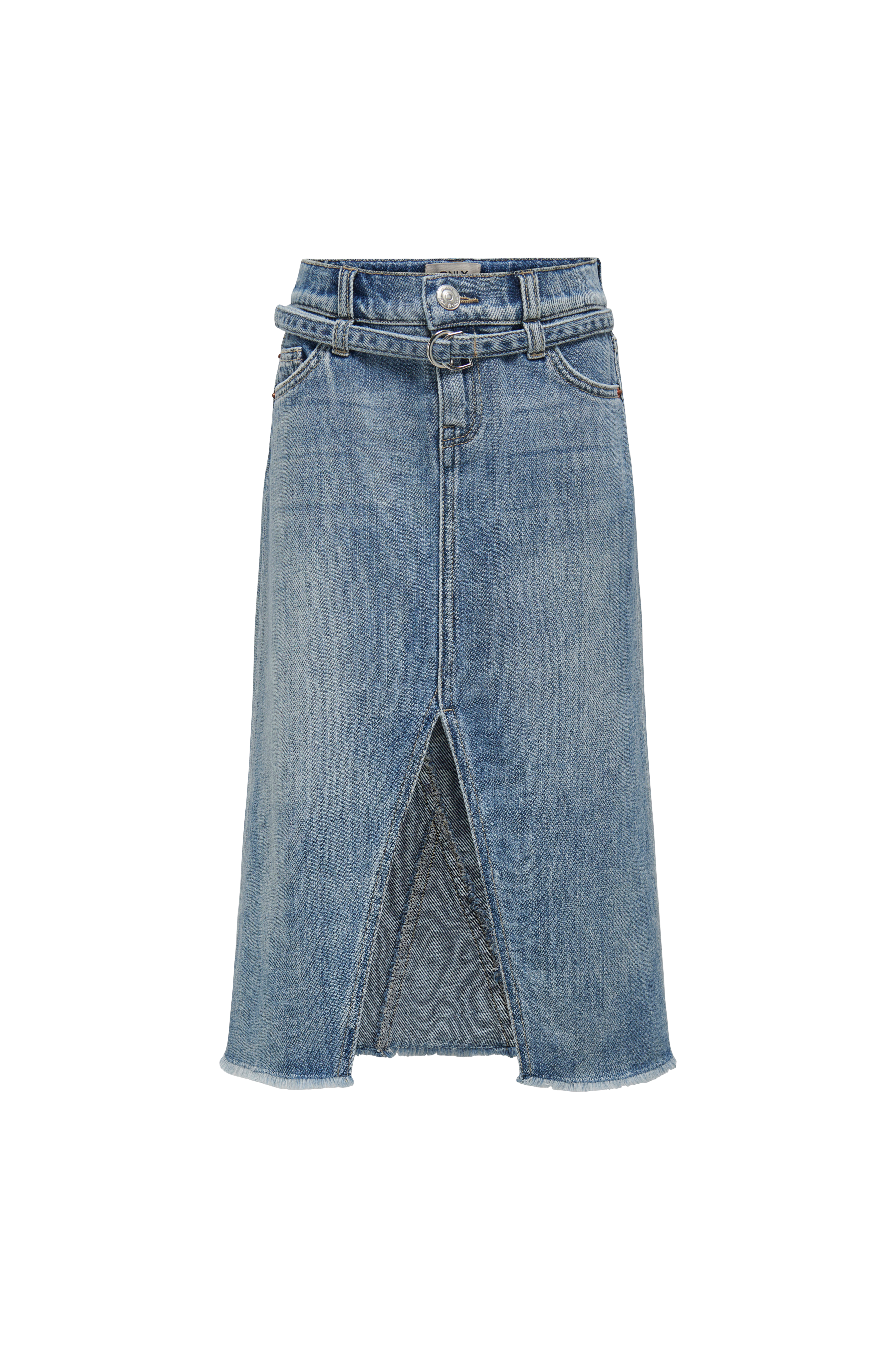 • Lige femlommemodel• Tyndt bælte med metallukning• Justérbar talje• Gylp med lynlås• Slids foran• Rå, frynset søm