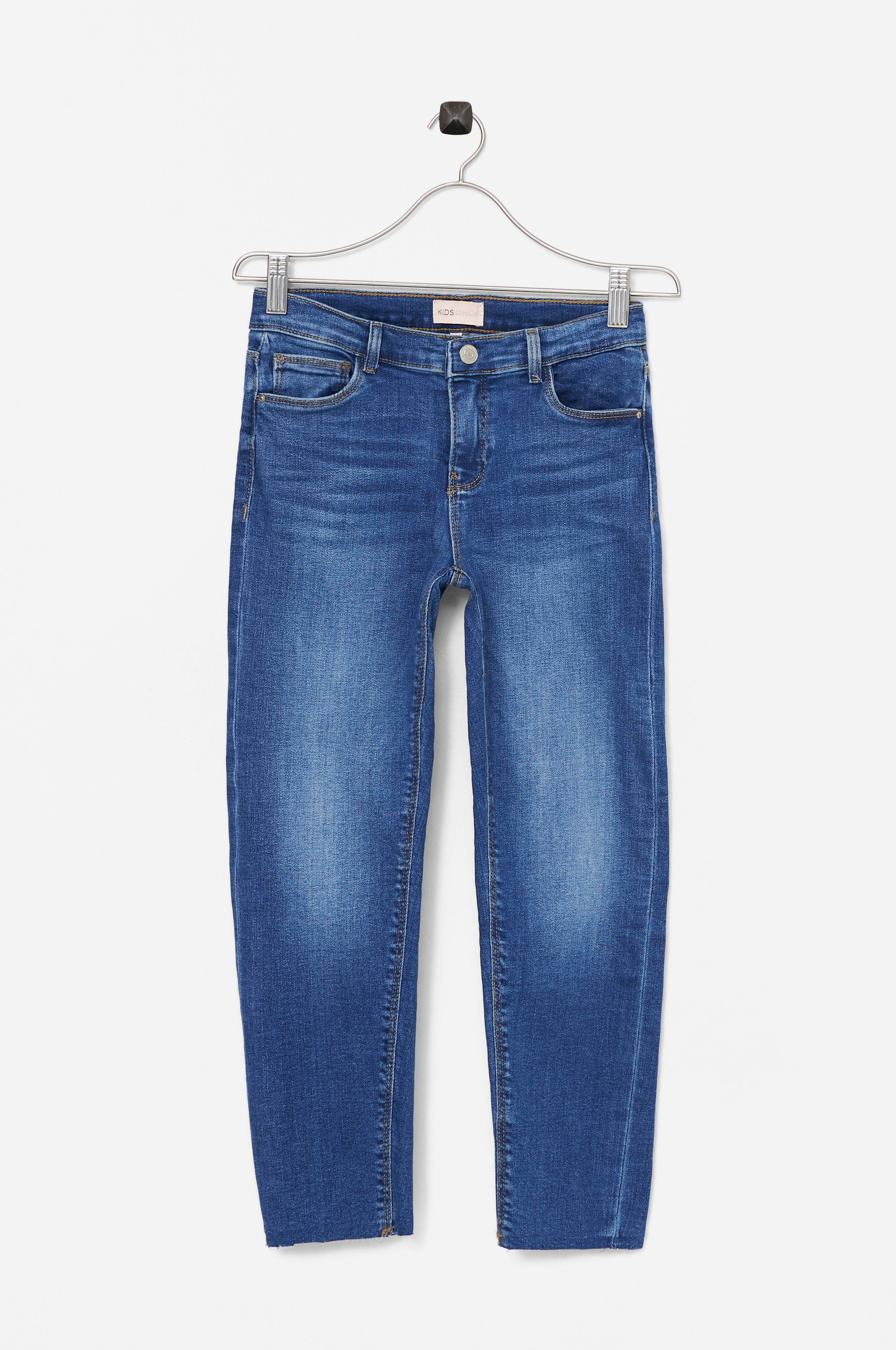 Jeans i stretchdenim. 5-lommemodel med regulerbar linning. Gylp med lynlås.