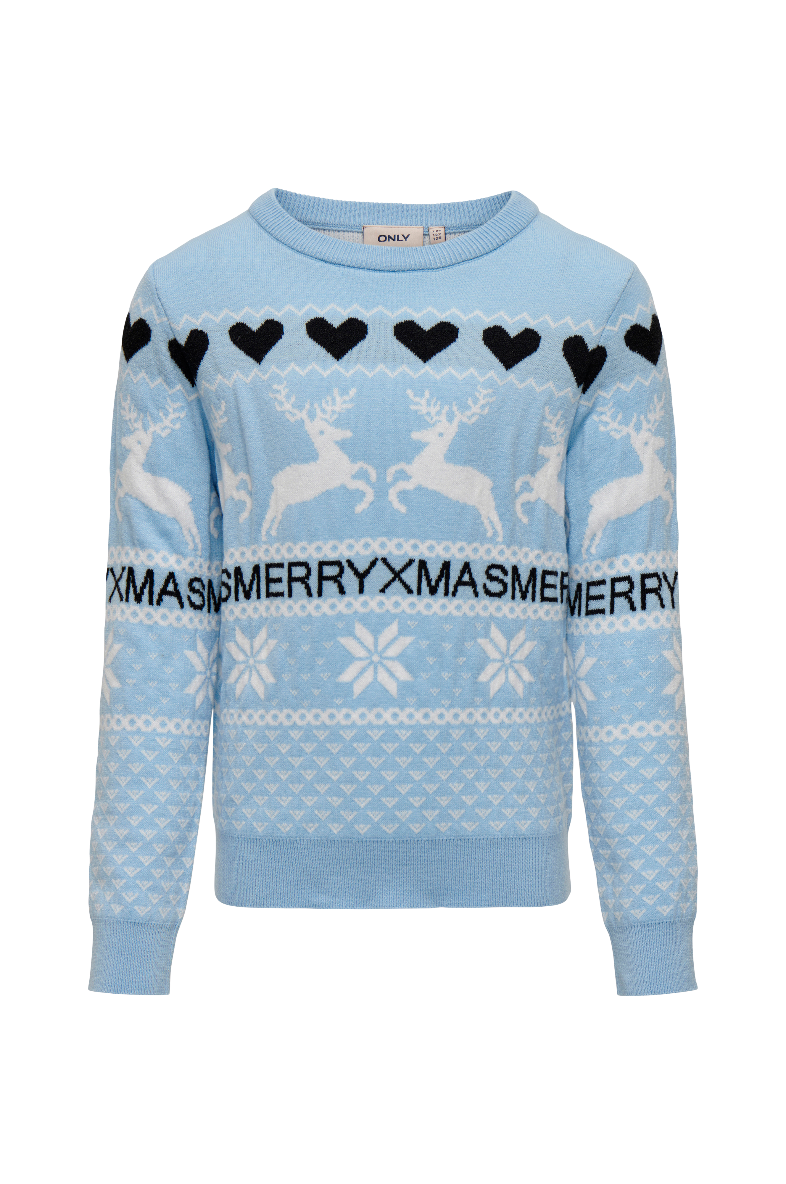 • Fintstrikket, blød trøje med julemotiv• Rund, ribbet halsudskæring• Ribmanchetter ved manchetterne og nederst