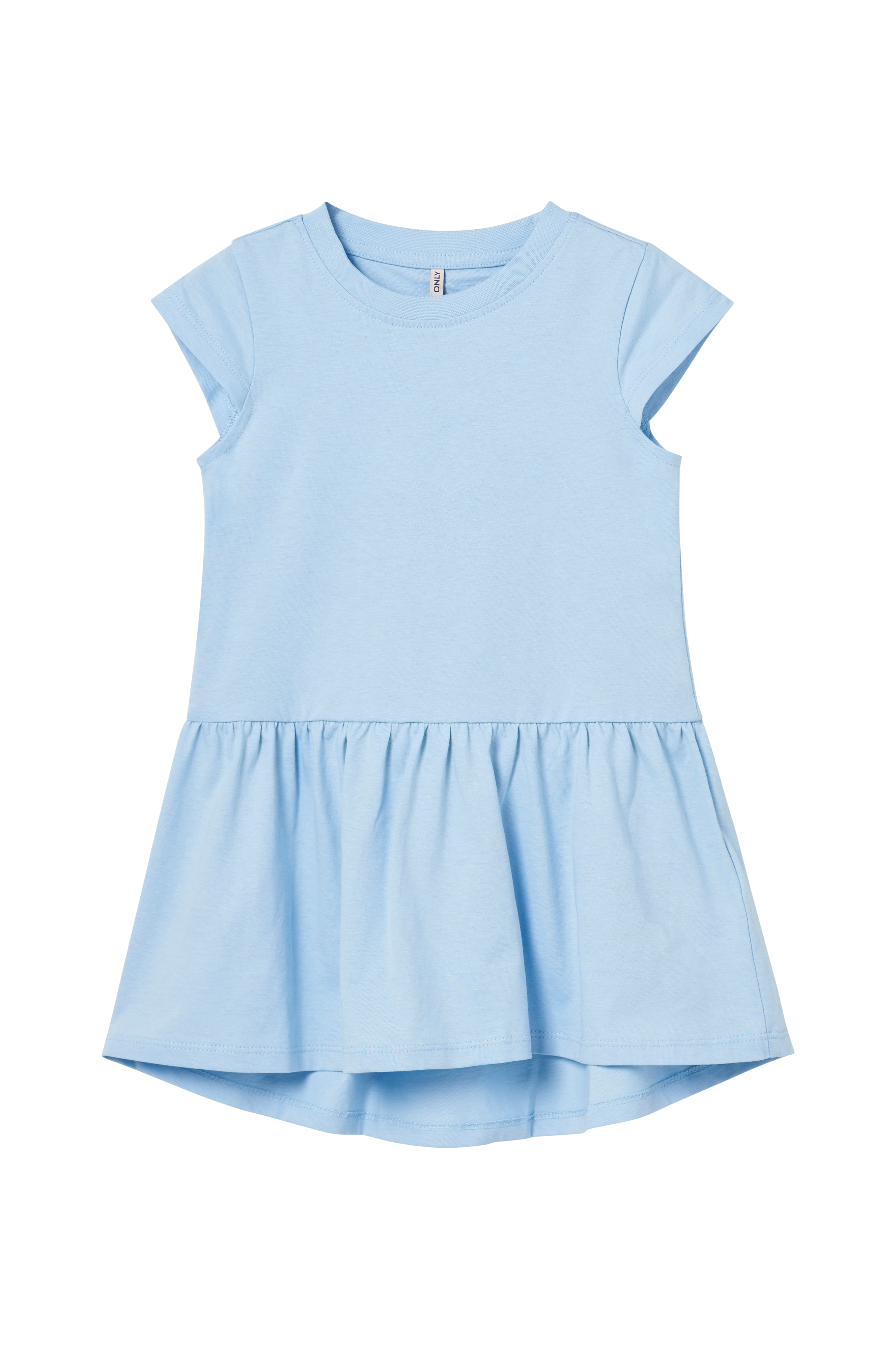 • Kjole i blød bomuld• Rund halsudskæring• Vingeærme• Elastisk bånd ved taljen
