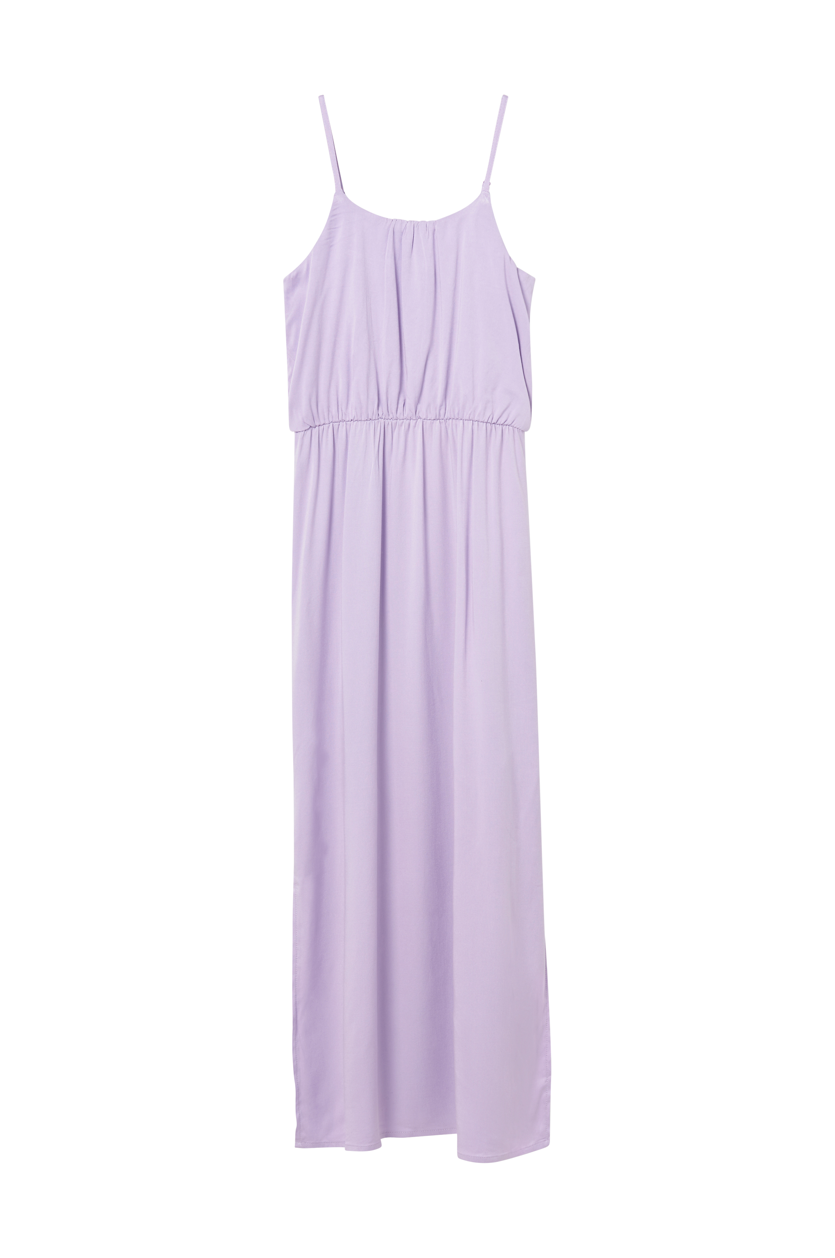 • Tynde, justérbare skulderstropper• Rynket halsudskæring• Elastisk talje• Slidser i siderne