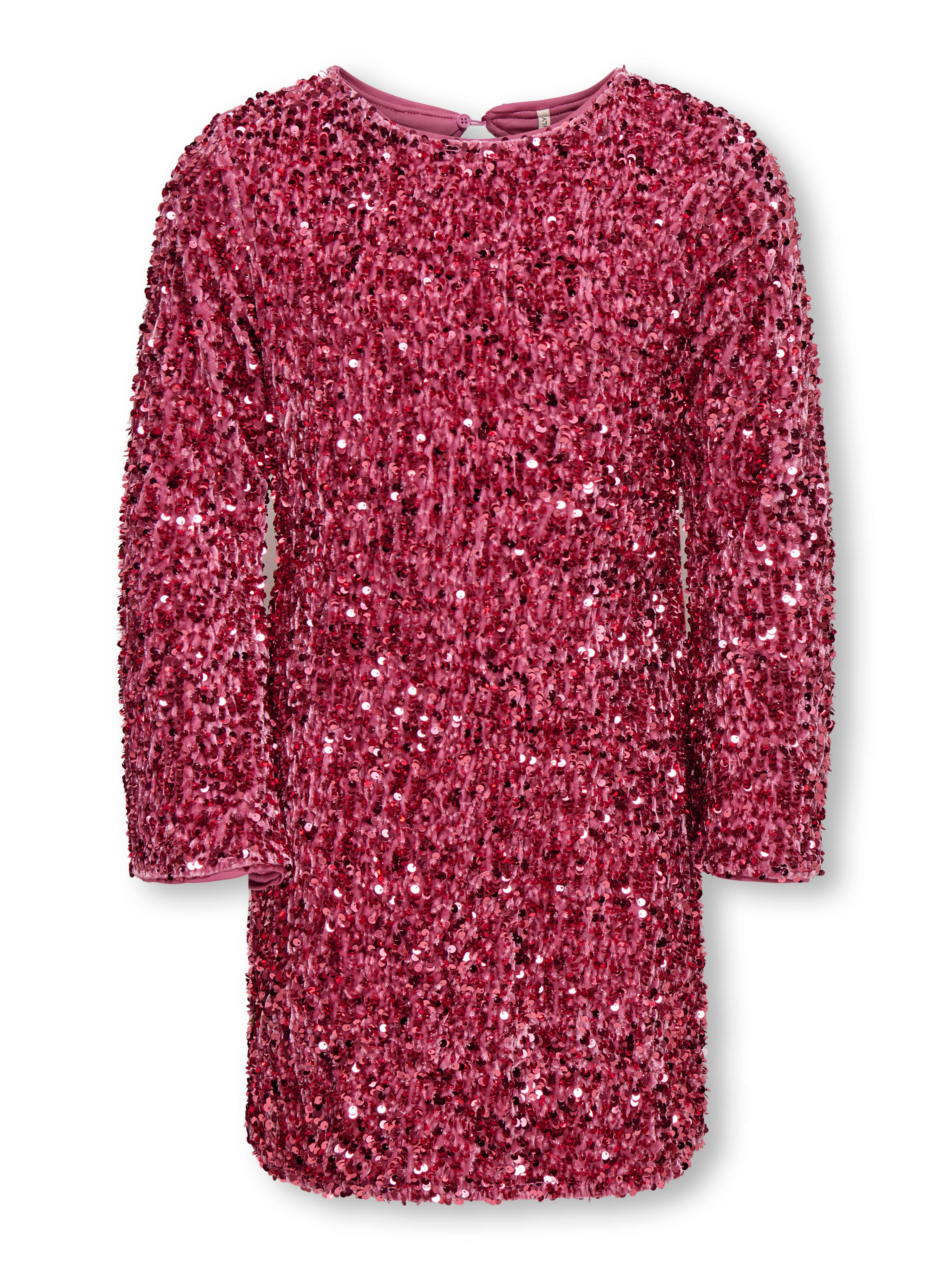 • Kjole med pailleter• Rund halsudskæring• Nøglehulsåbning bagpå• Trompetærmer