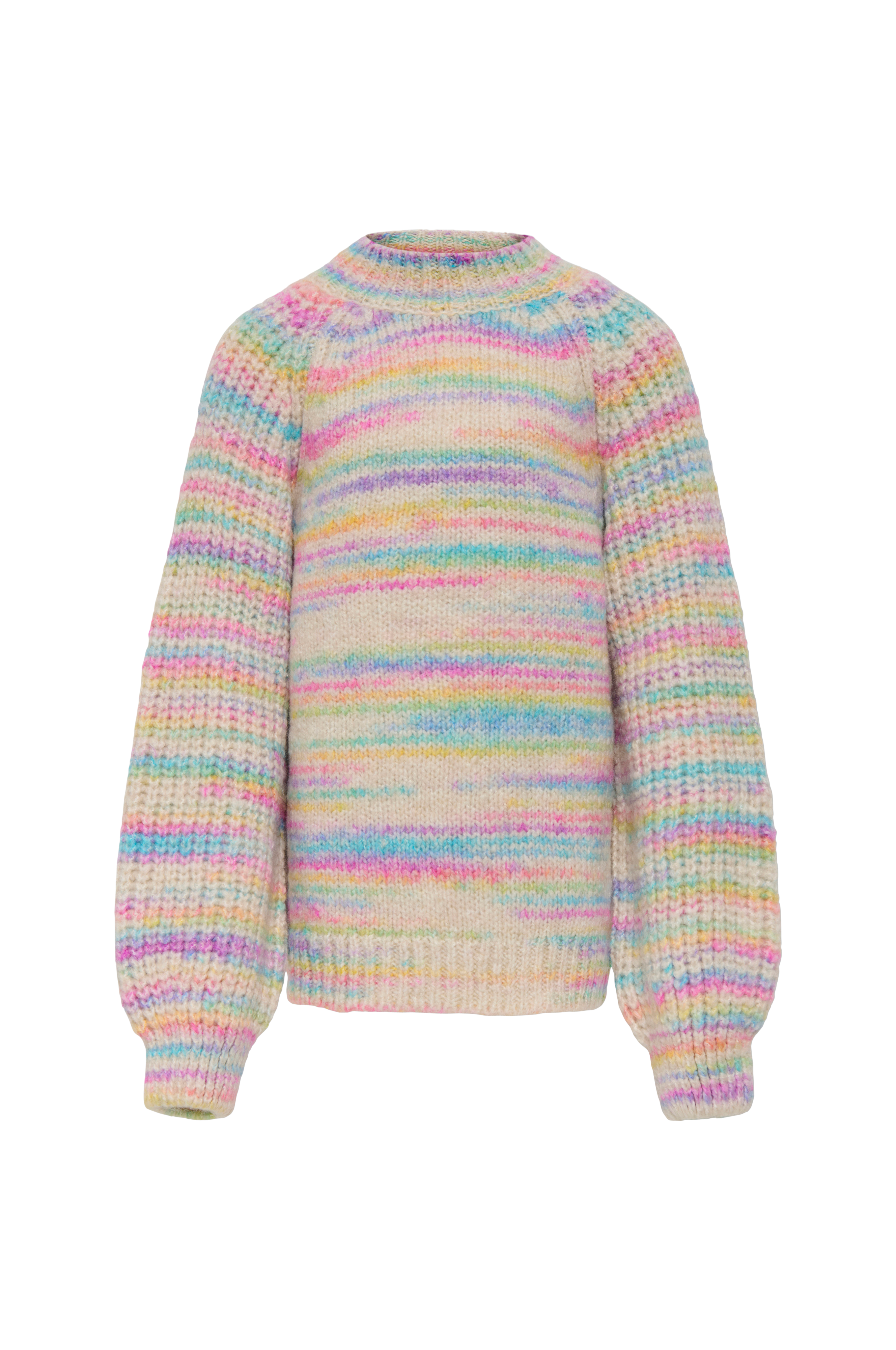 • Strikket, multifarvet Pullover• Halvhøj, ribbet halsudskæring• Ribmanchetter ved manchetterne og ved nederste kant