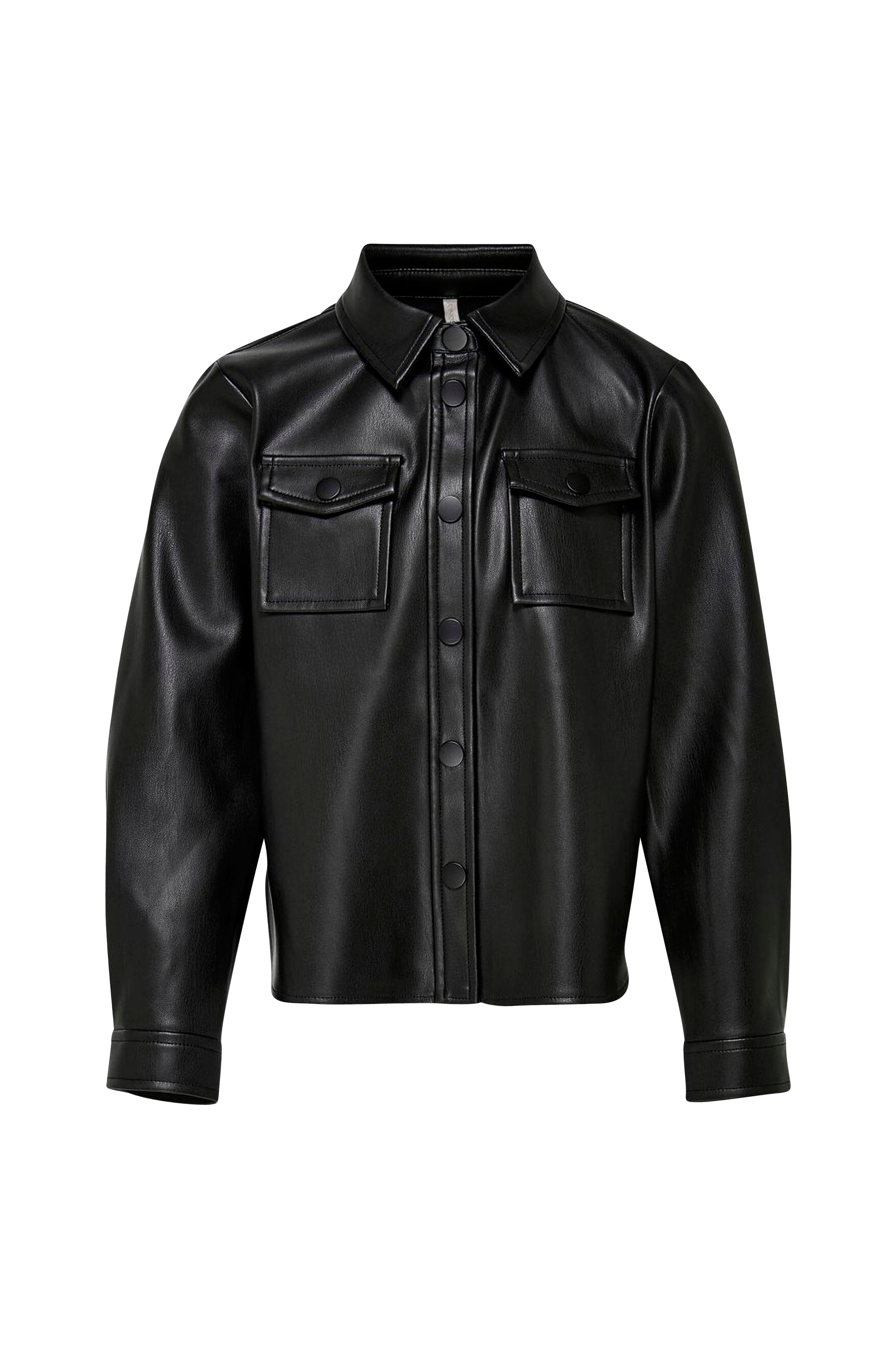 Skjorte konBrylee-Dion Faux Leather Shirt fra Kids Only i imiteret skind af PU-belagt polyester. Trykknapper. To brystlommer med klap med knap. Slids og trykknap i ærmekant. Slids i siden og afrundet kant forneden.