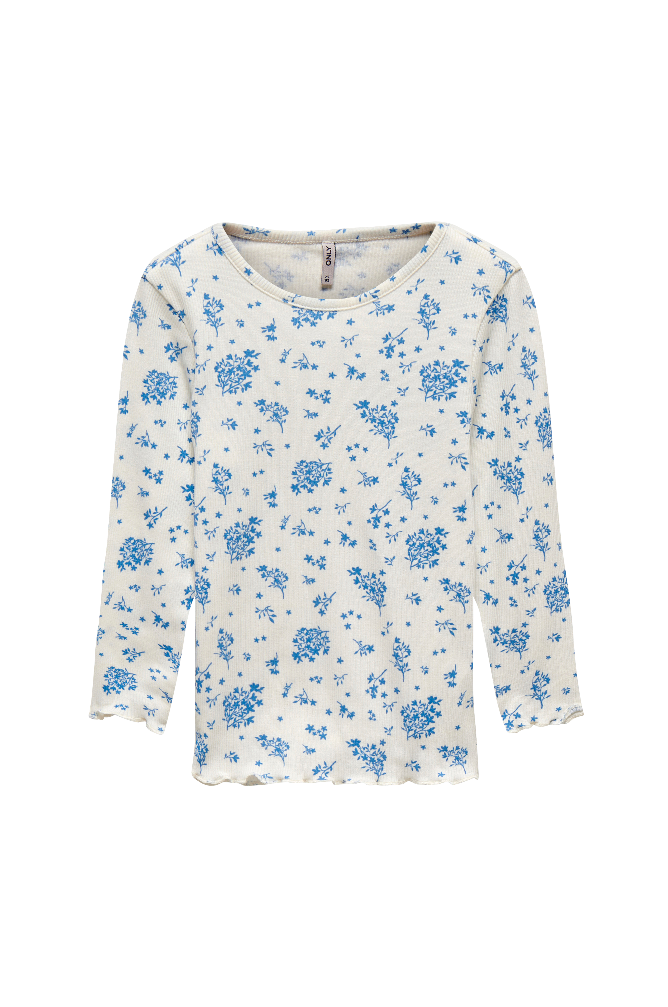 • Ribbet top• Lange ærmer• Bølget kant ved manchetterne og nederst