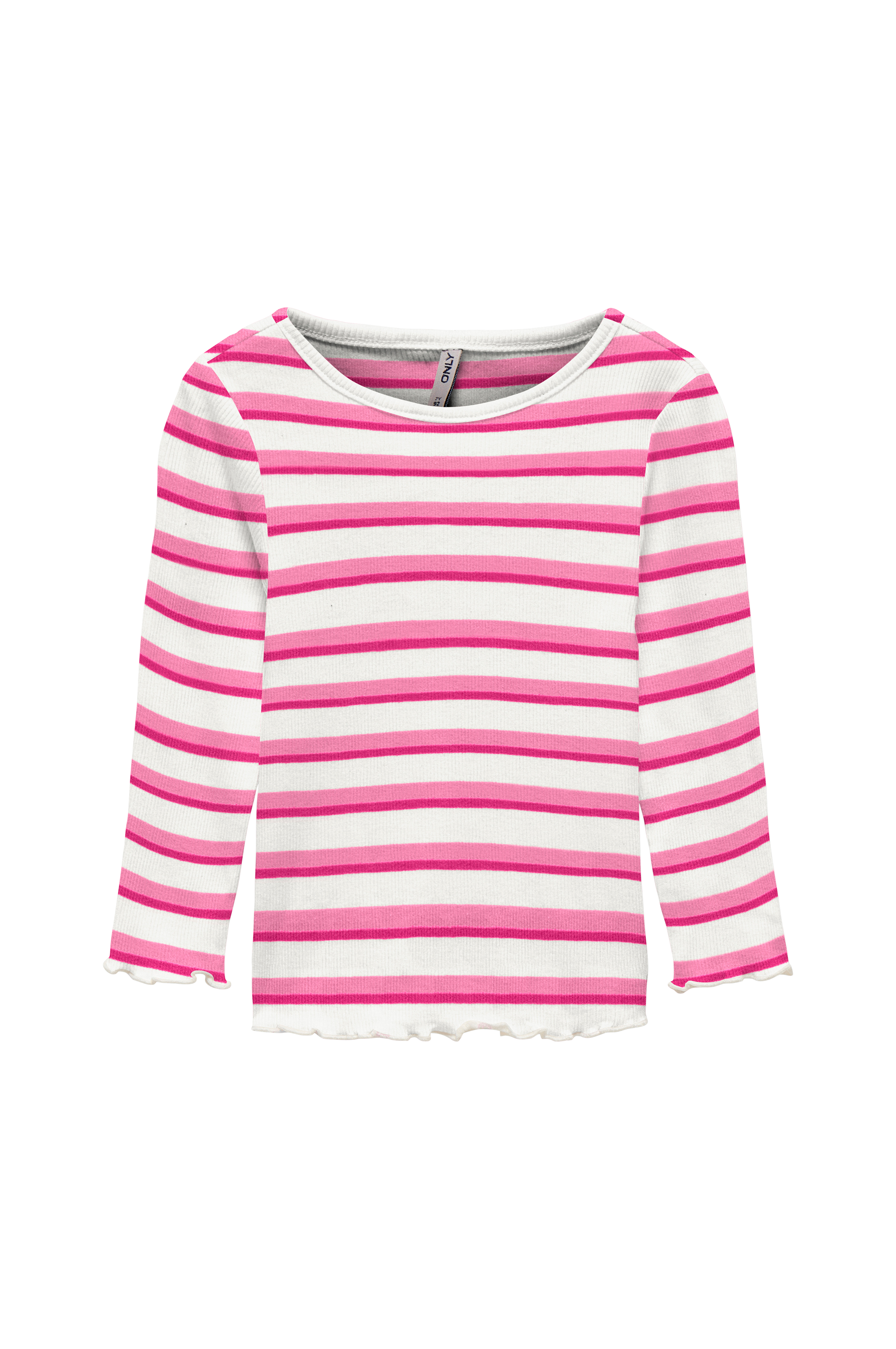 • Ribbet top• Lange ærmer• Bølget kant ved manchetterne og nederst