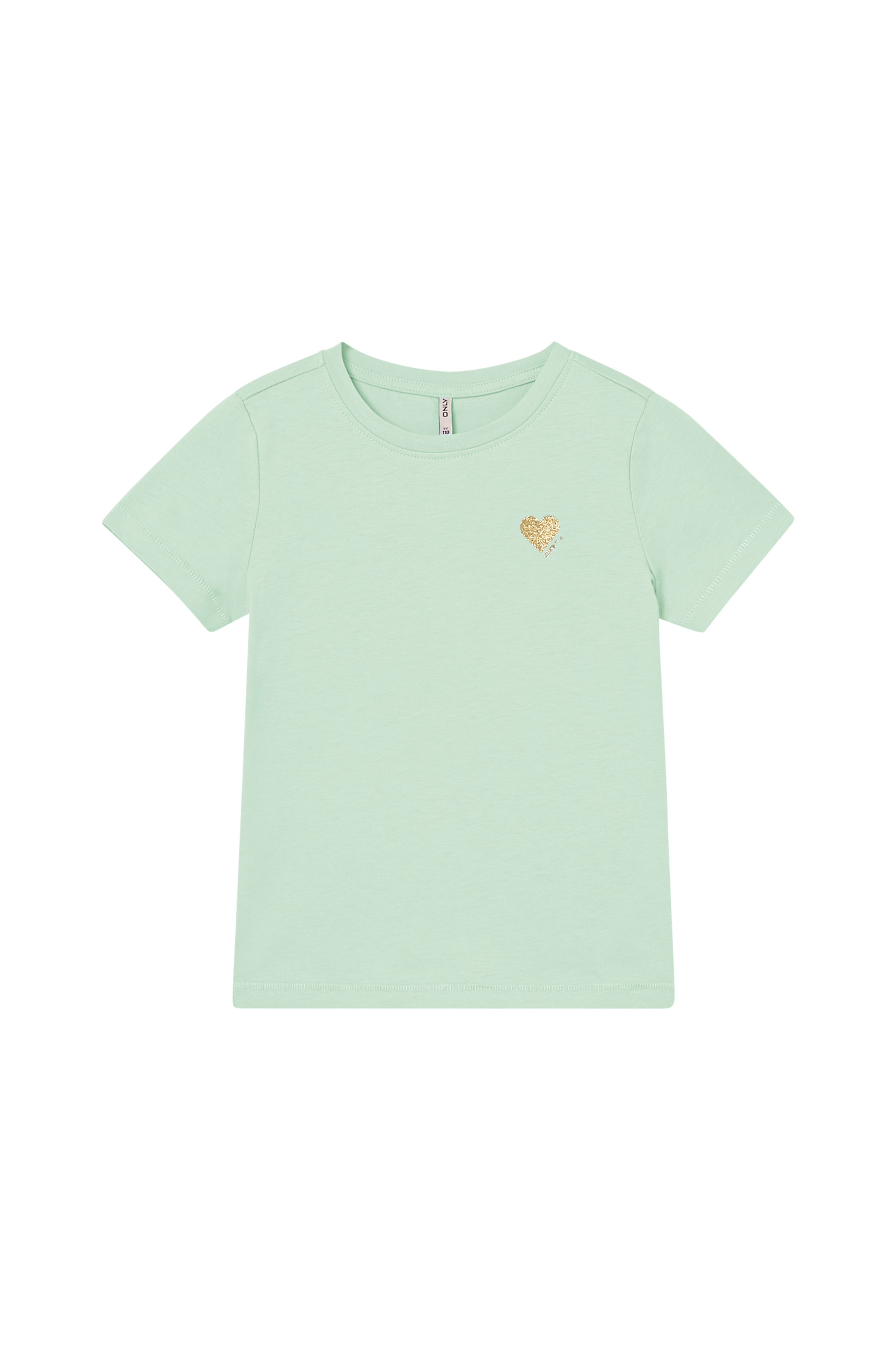 • Model med kort ærme• Glitrende, guldfarvet tryk på brystet• Rund hals med lille, ribbet kant