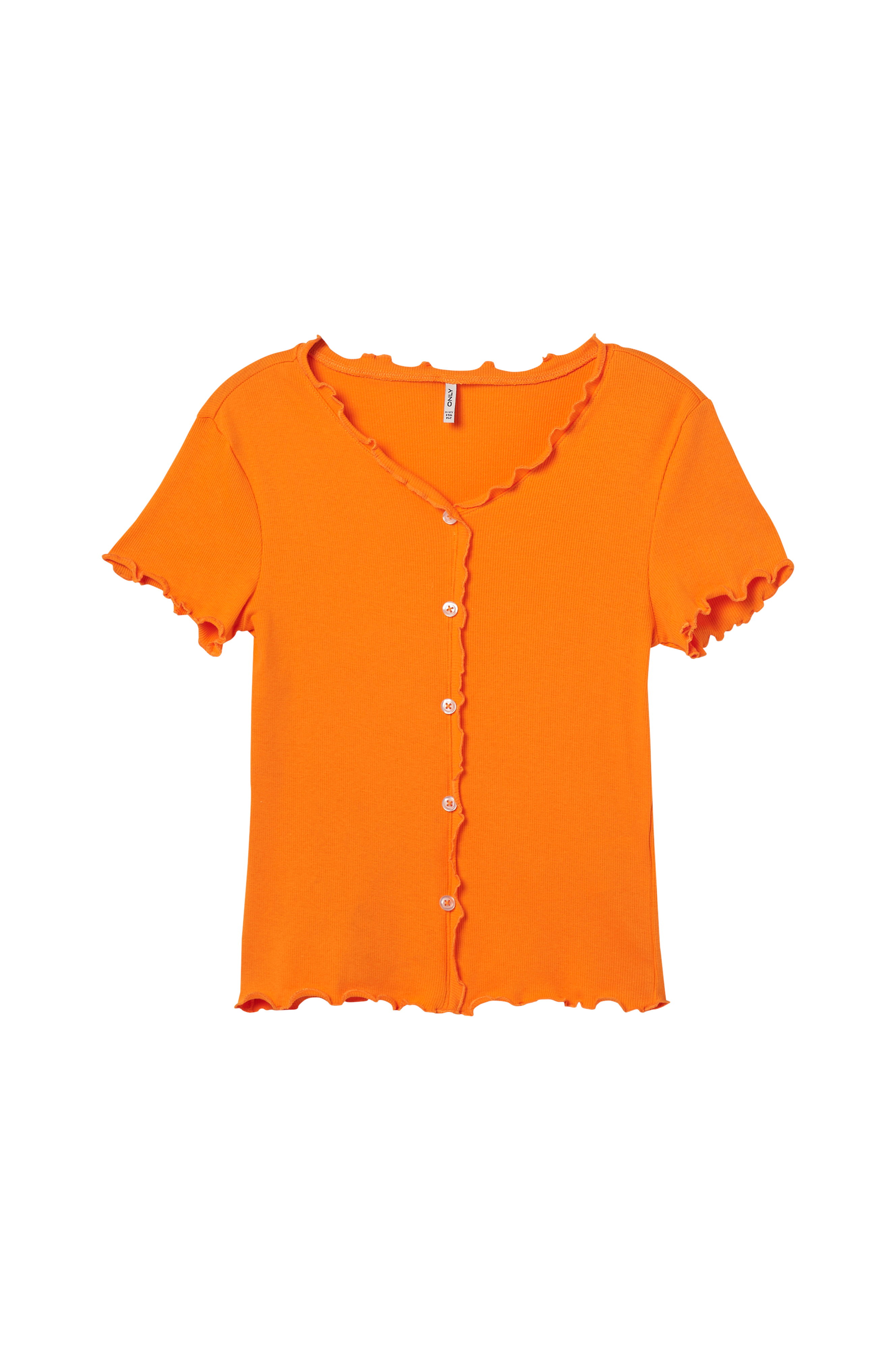 • Ribbet, elastisk jersey med rullede kanter• V-udskæring• Dekorationsknapper foran