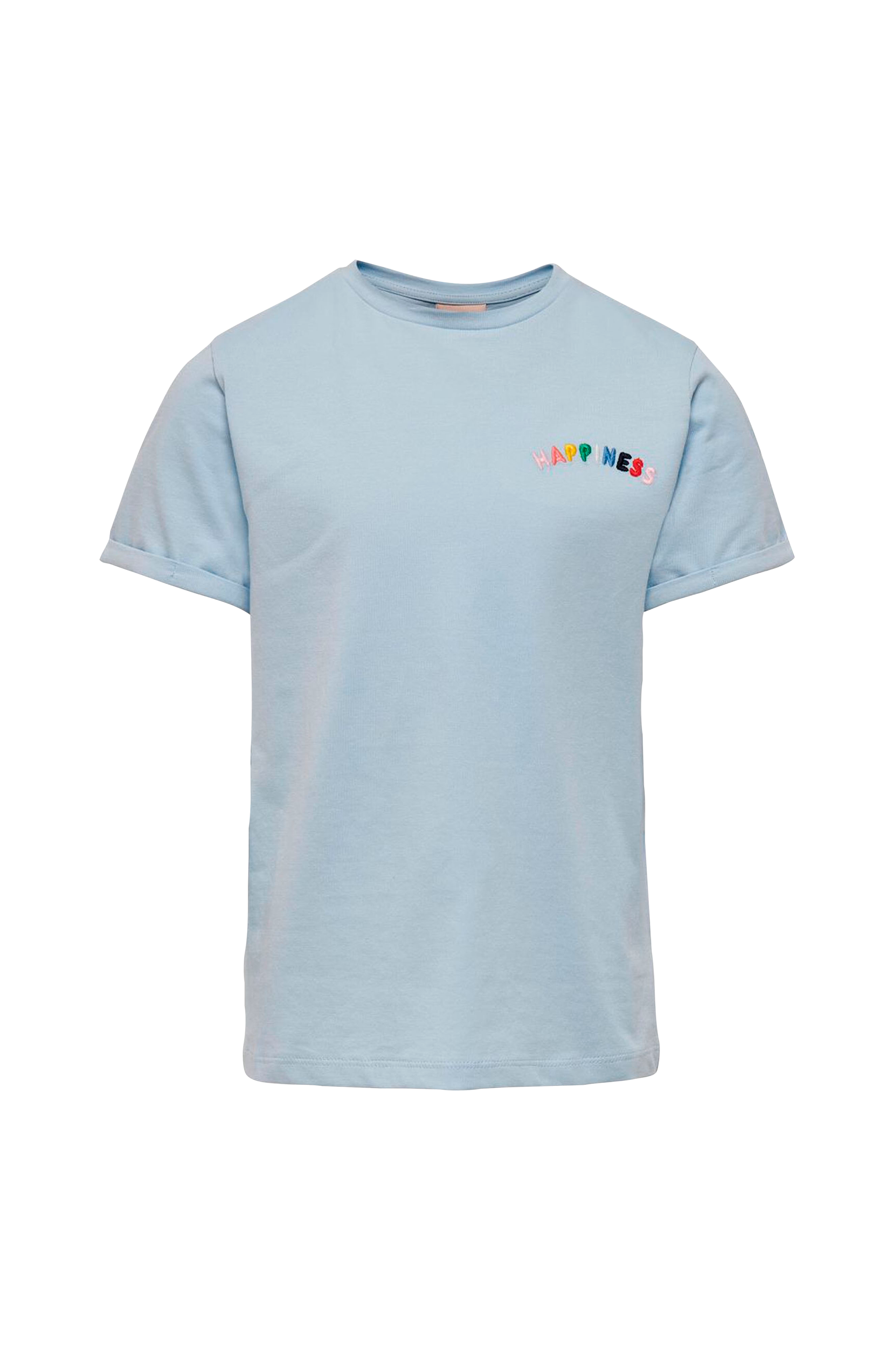 Kortærmet top i bomuld. Rund hals og broderi foroven foran. Opsyet ærmekant.