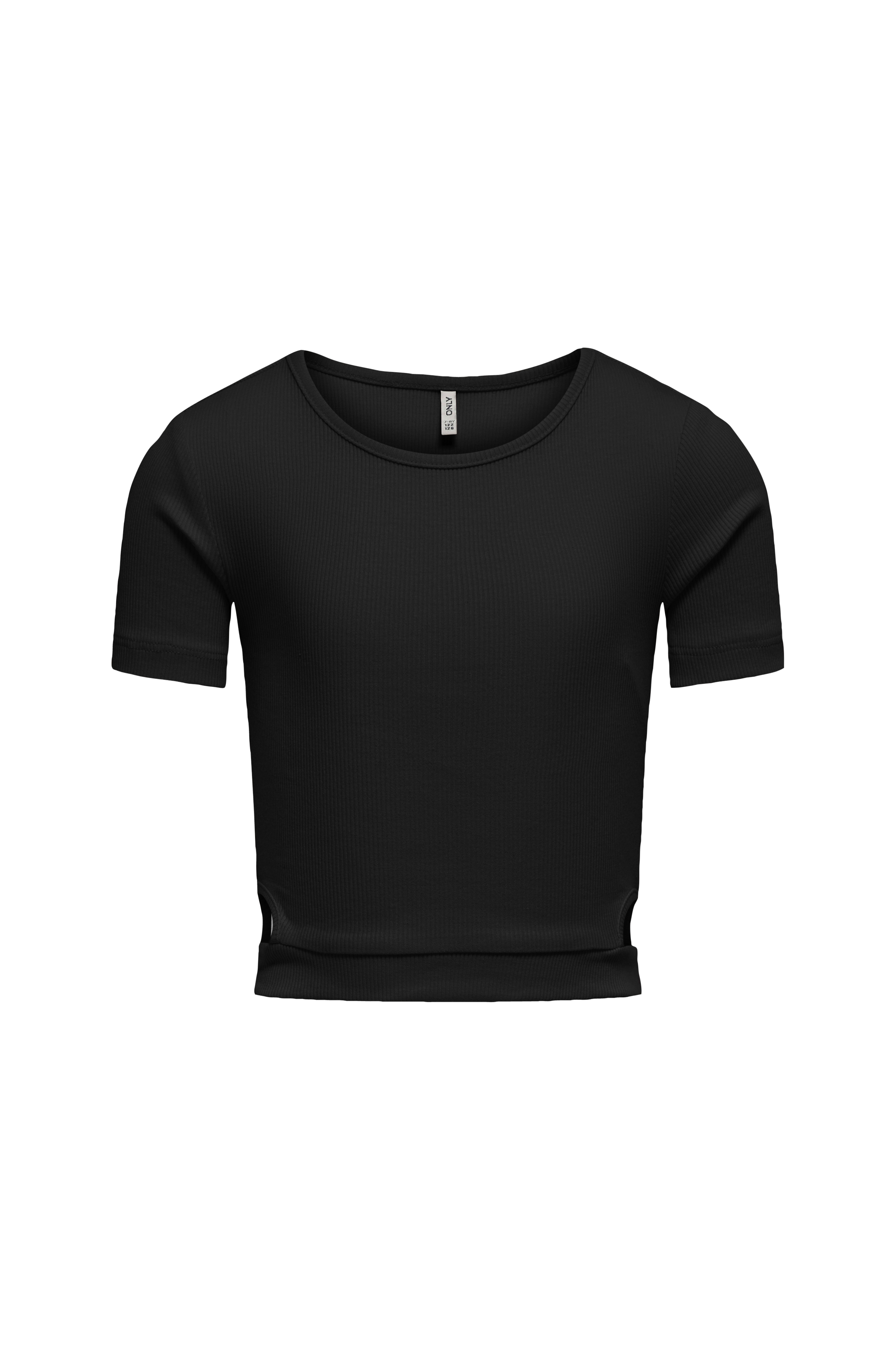 • Ribbet top• Korte ærmer• Udskæring nede i siderne