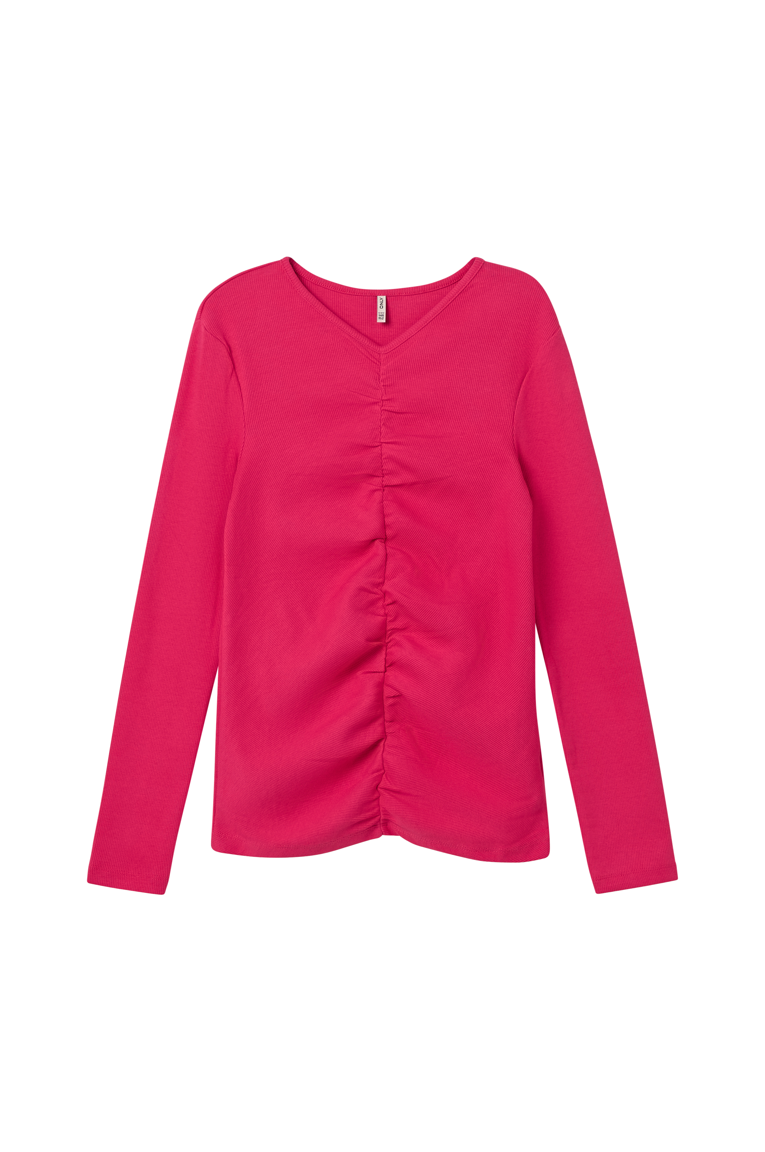 • Langærmet top i bomuldsjersey• V-udskæring• Rynket drapering foran