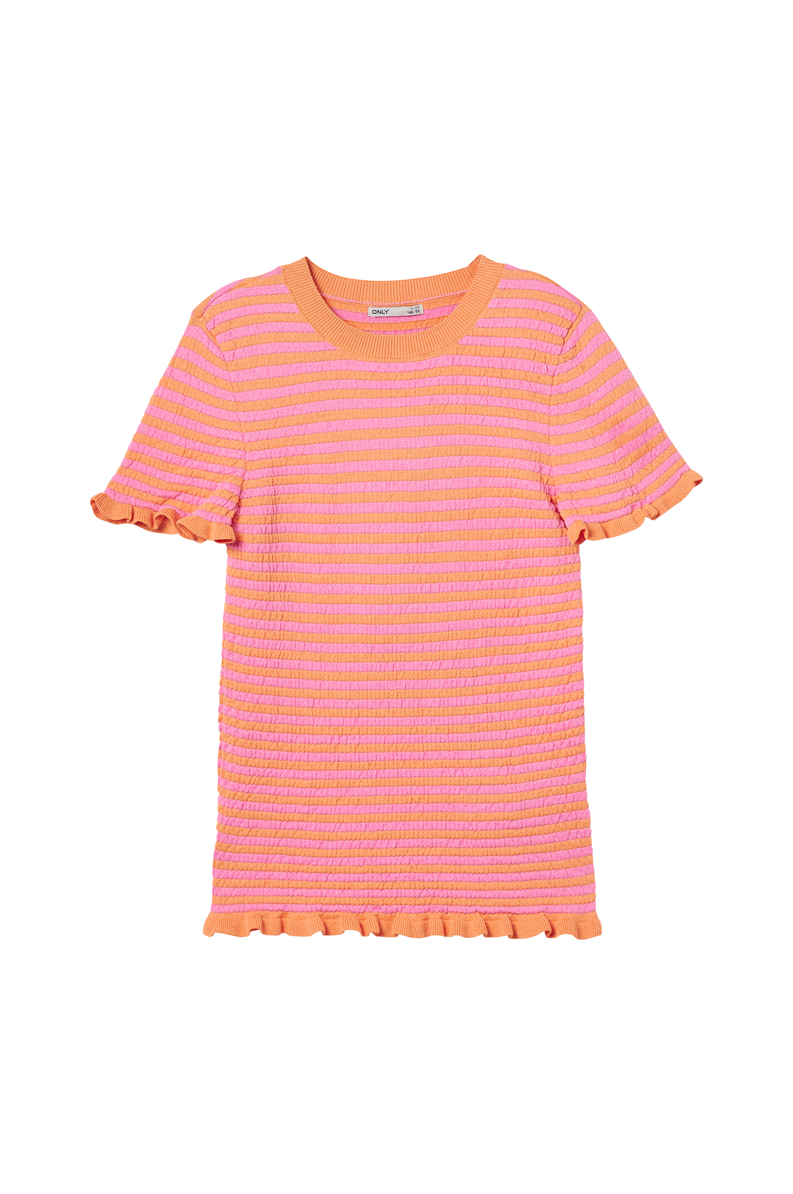 • Elastisk materiale• Rund, ribbet halsudskæring• Korte ærmer med ribbede kanter• Ribbet søm