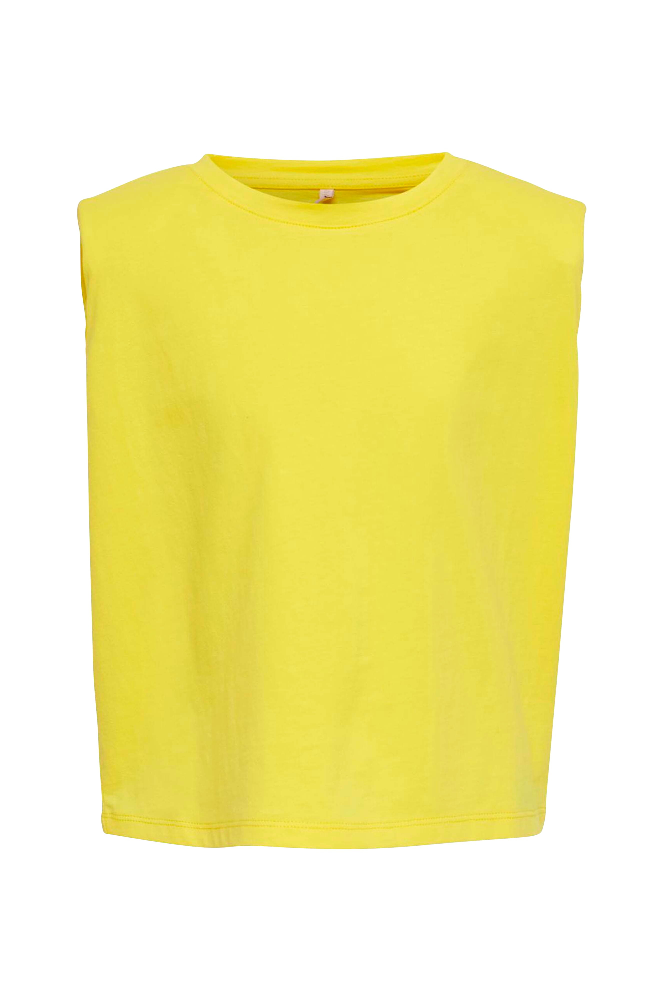 Ærmeløs top i økologisk bomuld med vatterede skuldre. Rund halsudskæring med ribkant.