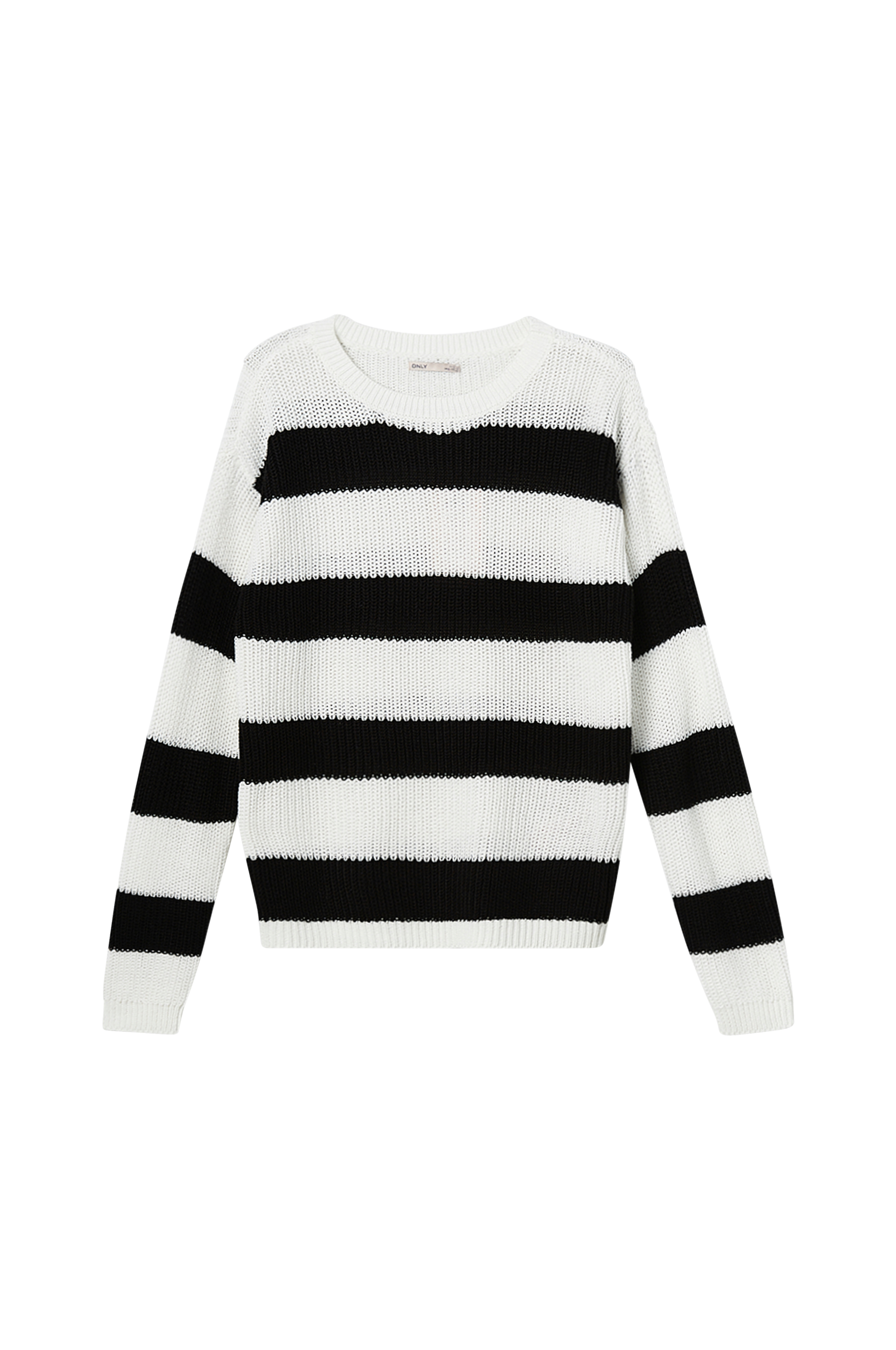 • Model med strikkede striber• Ribbet rund hals