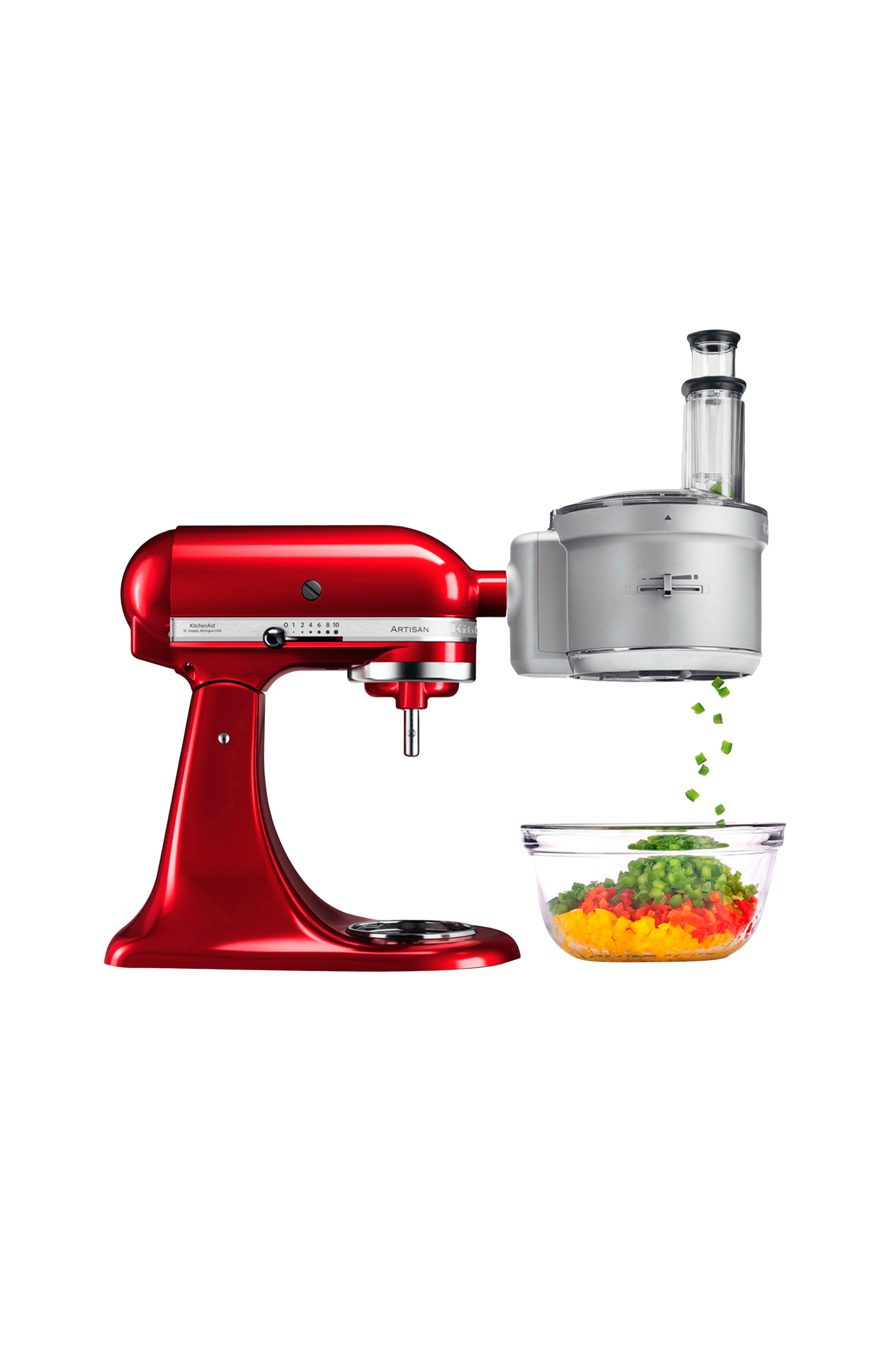 Den samlede tilberedningstid er også reduceret takket være det 2-i-1 bredmundede rør og en skubber, der fører maden mod åbningen, hvilket eliminerer stop-start-skrabning og giver dig mulighed for at bruge en valgfri skål.