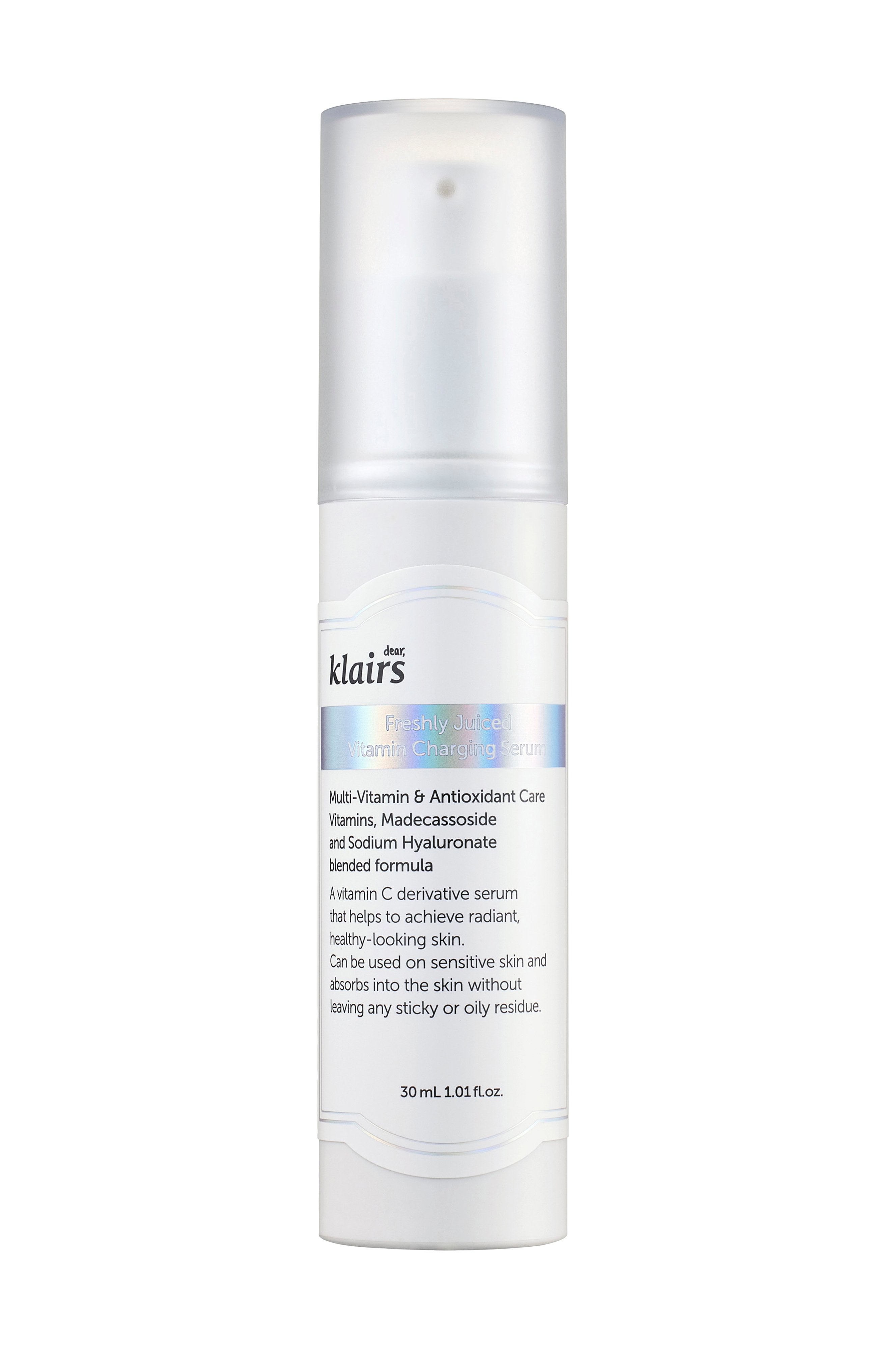Freshly Juiced Vitamin Charging Serum er et multifunktionelt serum, der udglatter og giver en udelelig glød, samtidig med at den fugter og opstrammer huden i dybden for en smidig, fyldig og velvære hud. Indeholder 10% 3-O ethyl ascorbinsyre og niacinamid, som sammen med vitamin B2, B5 og E giver en strålende og klar hud, samtidig med at de modvirker tidlige ældningstegn som pigmentering og fremkomsten af fine linjer.