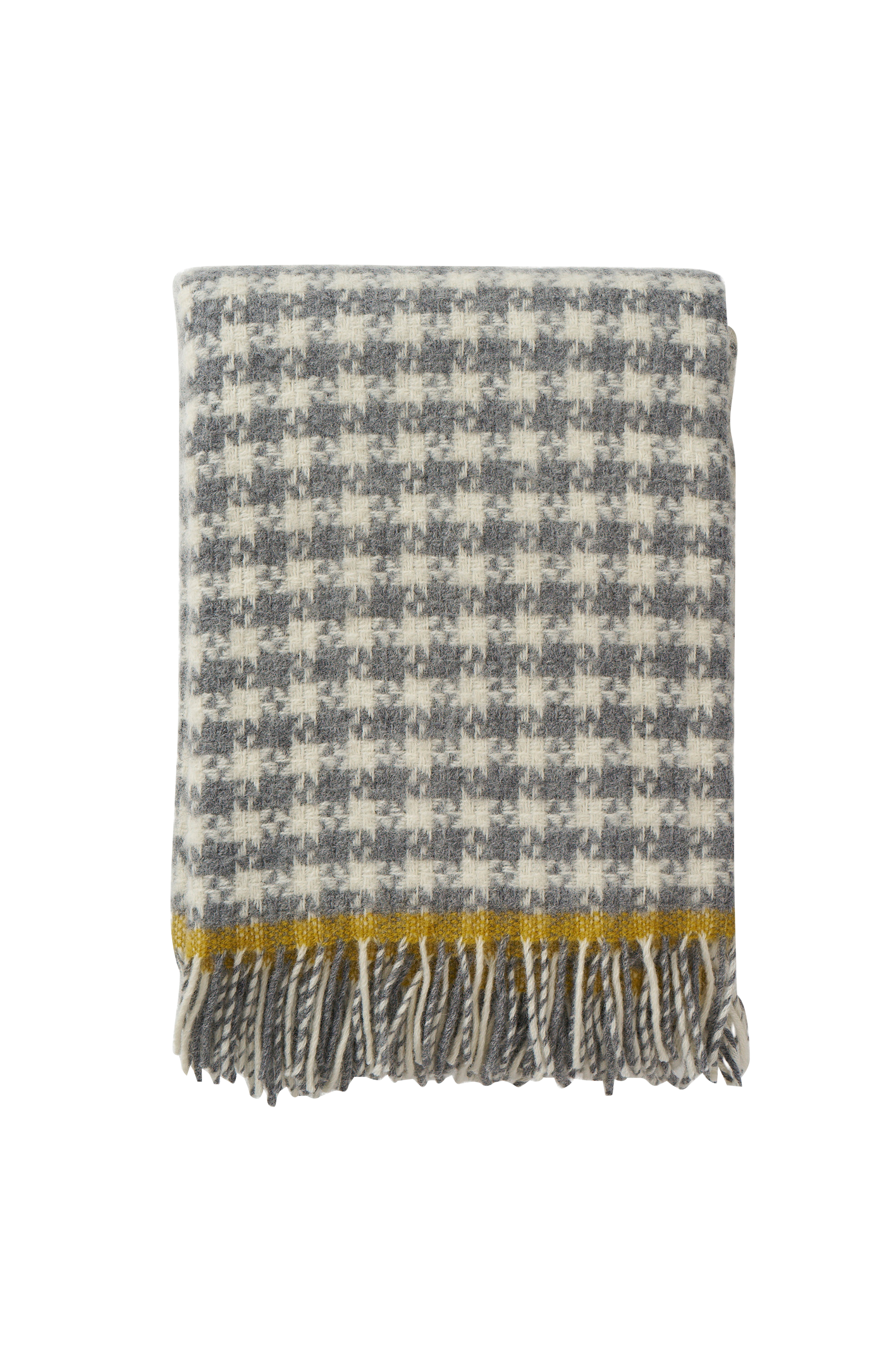Dogtooth har et klassisk mønster i forskellige farvekombinationer. Den vævede struktur skaber et stærkt grafisk udtryk. Lammeuld giver et varmt, naturligt smudsafvisende tæppe, der passer både på sofaen og som sengetæppe. 100% lammeuld, 130x200 cm. Maskinvask ved 30 grader. Kun uldprogram. Vask separat. Stryg ved medium temperatur. Tør ikke i tørretumbler. Brug ikke blegemiddel.