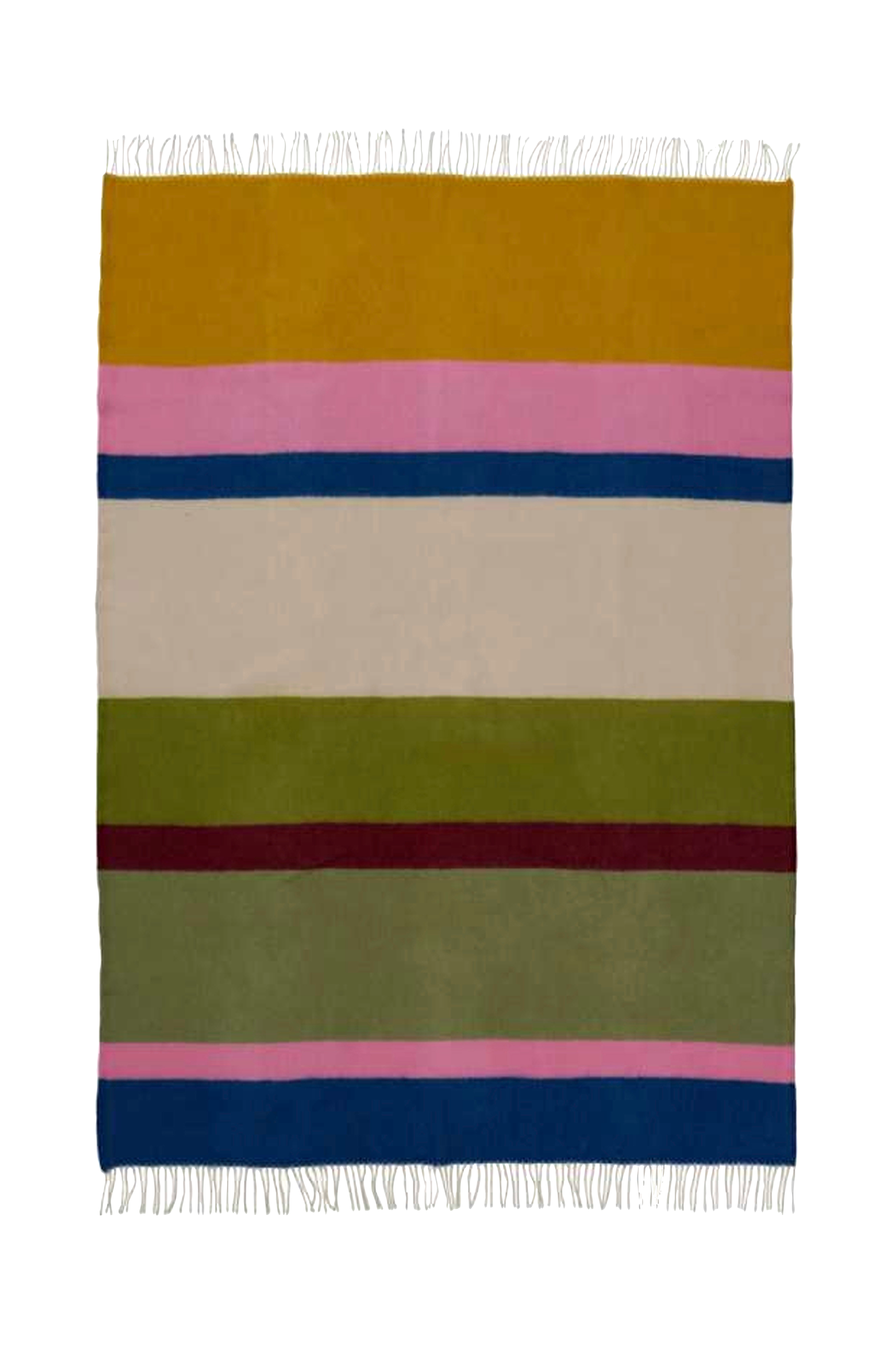 Varm dig med god samvittighed med vores farverige tæppe Arty, der er lavet af 100 % lammeuld. Tæppet måler 130x200 cm og er den perfekte kombination af komfort og stil med alle årets trendy farver. Maskinvask ved 30 grader. Stryges på medium varme.