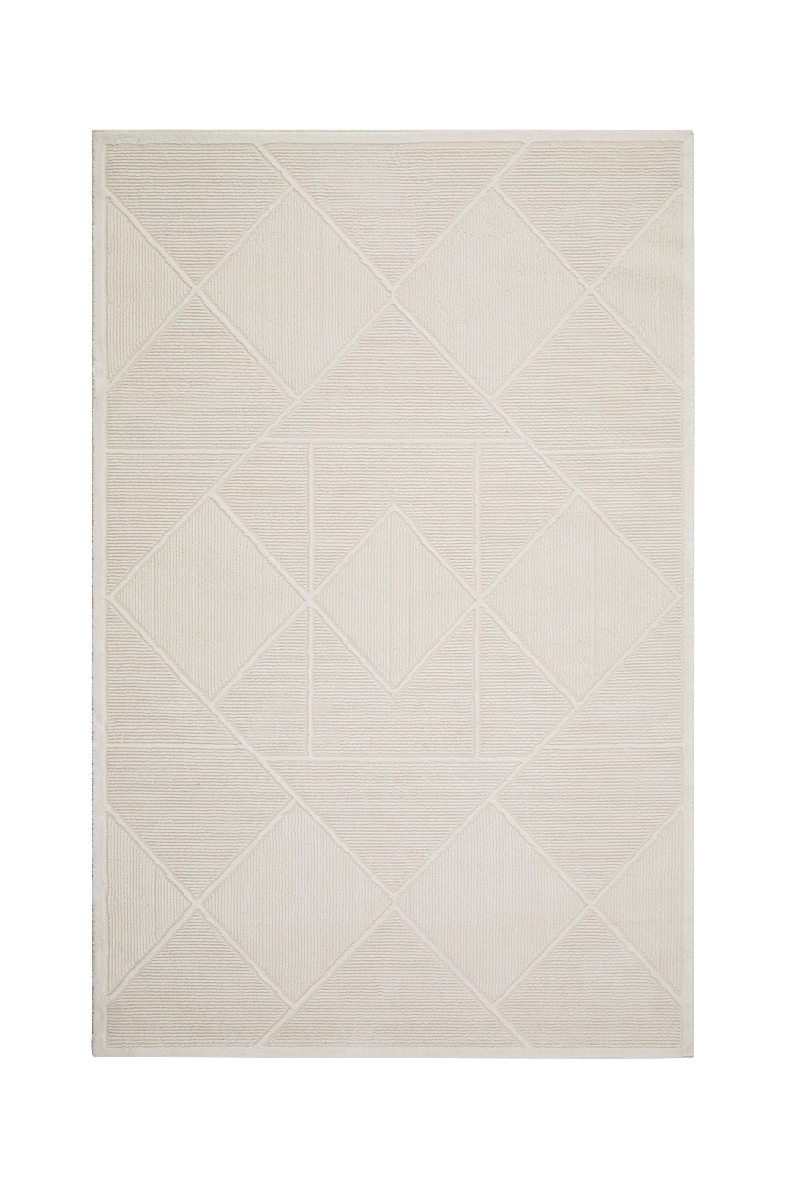 Stilrent mønster og flotte farver gør det til et sikkert kort. Den tætte polyesterluv er vævet i high/low, hvilket giver mønsteret liv og effekt. Et tæppe, der takket være sit diskrete design gør det sjovt at dekorere og passer lige så godt under sofabordet at hvile fødderne på efter en lang dag på arbejde, som det gør at tage morgenens første skridt i soveværelset.