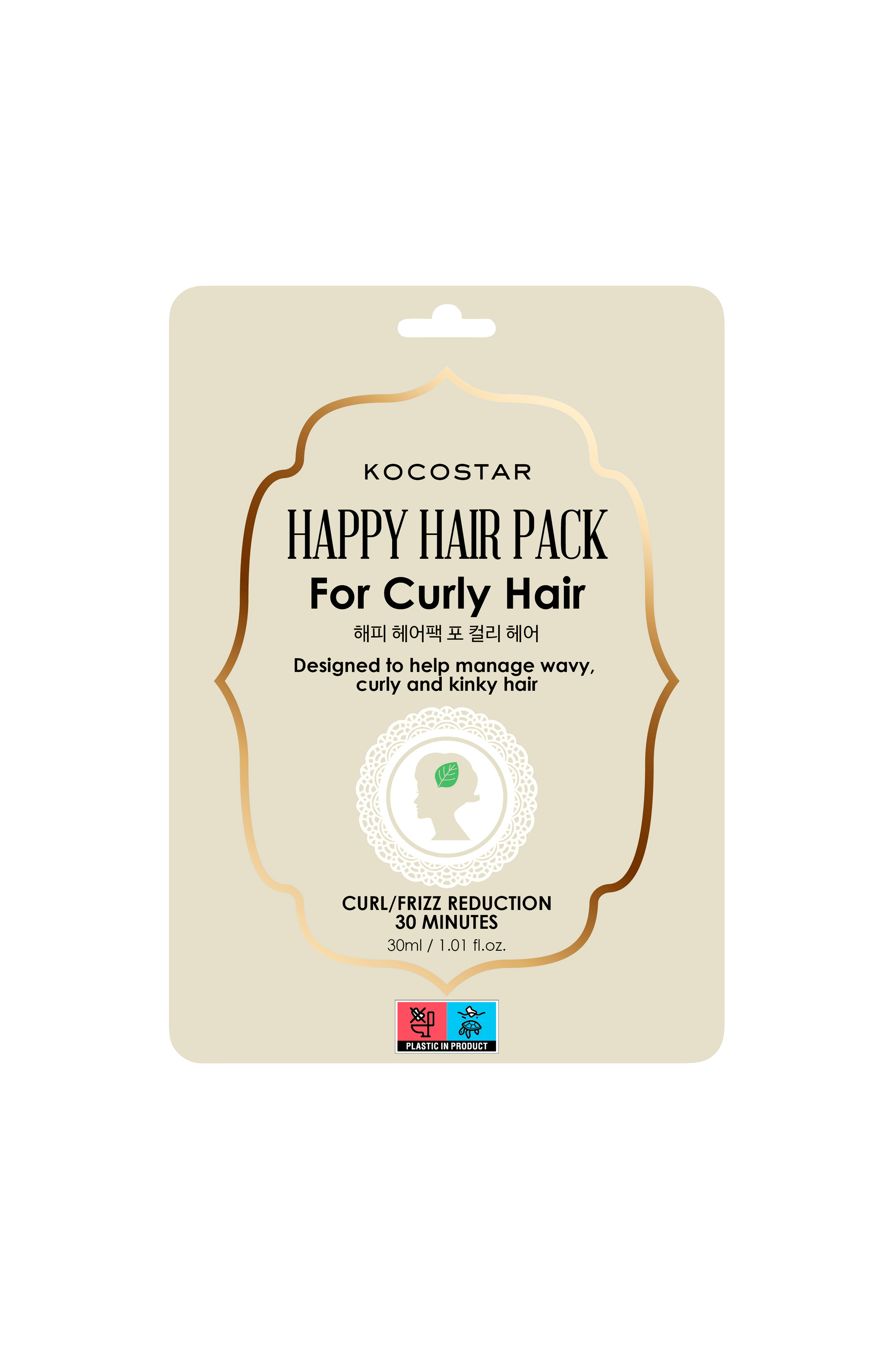 Happy Hair Pack til krøllet hår er en udglattende, afklarende og glansforbedrende hårindpakning. Den veganske, unikke formel hjælper gradvist med at rette krøller, der er svære at kontrollere, for en glattere, mindre kruset tekstur.