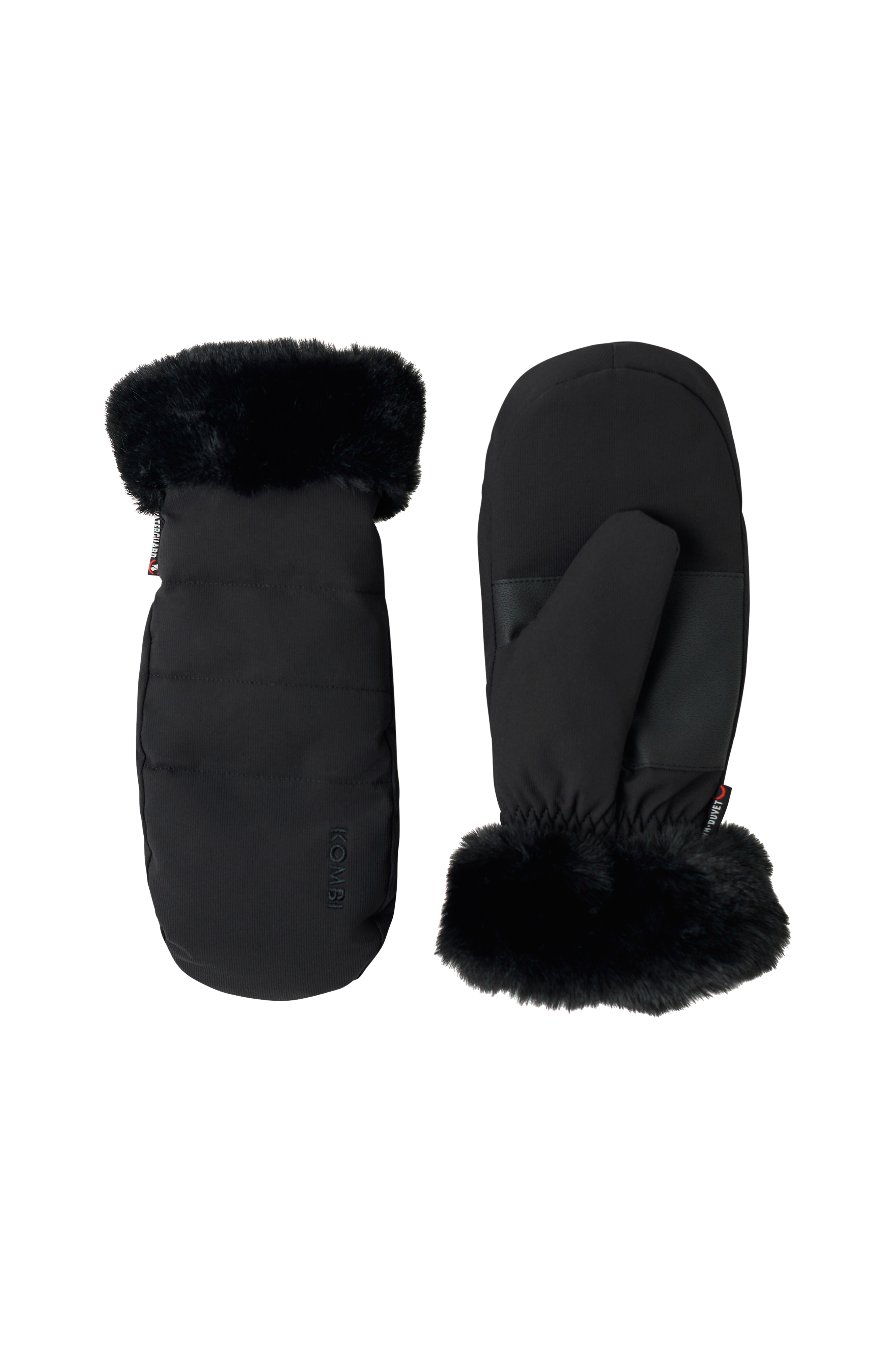 • Vind- og vandtætte vanter med fyld i dun• Åndbart materiale• Forstærket greb i håndfladen• Elastik ved håndleddet• Blødt, varmende for• Kunstpelskant på toppen