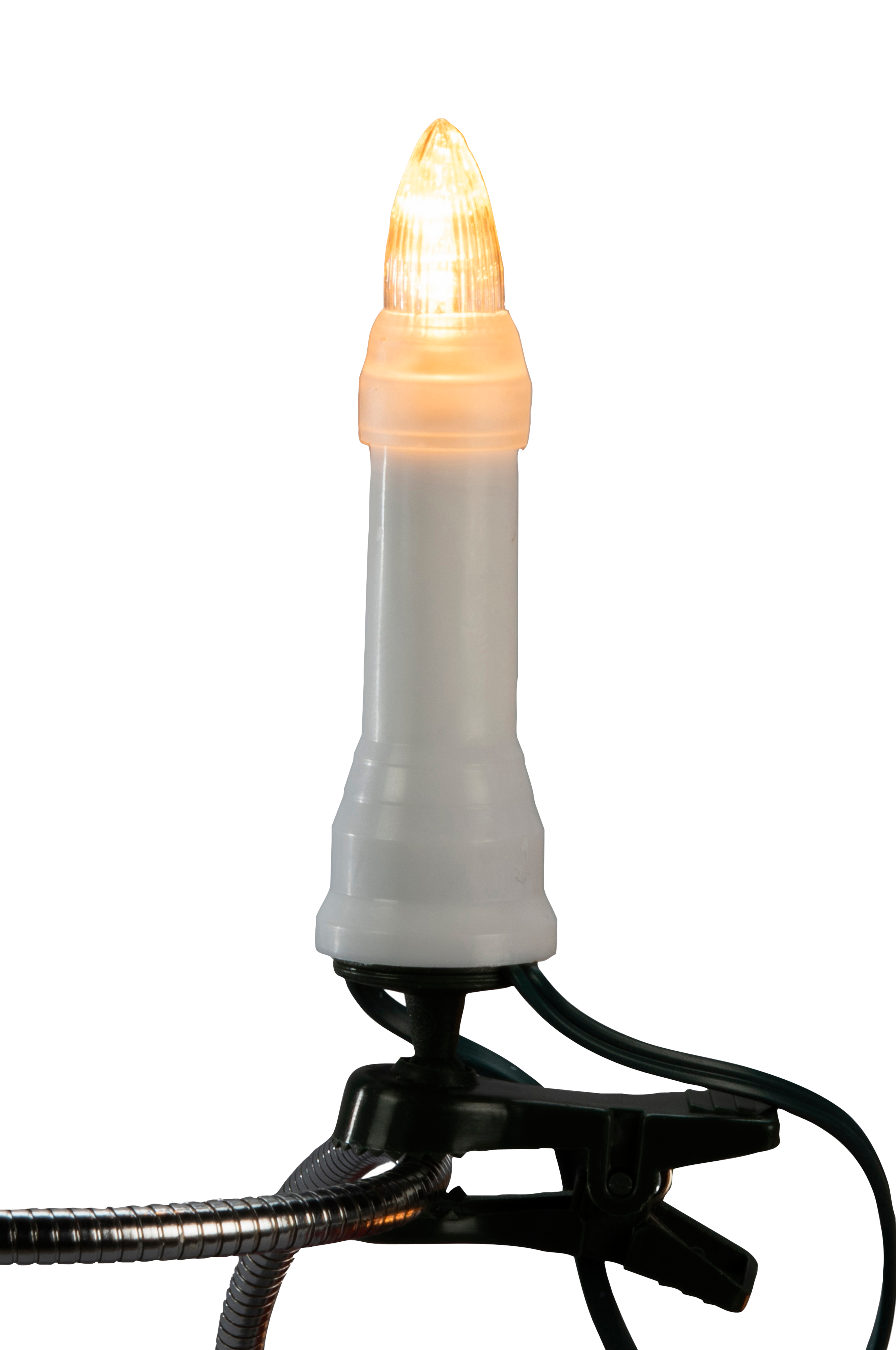 Juletræslyskæde, 12 m lang, med grønt kabel og 16 varmt lysende, varmhvide led-pærer til udendørs brug. Pærerne er parallelkoblede, udskiftelige og leveres med et 5 m langt tilslutningskabel. Drives af en 24v transformer.
