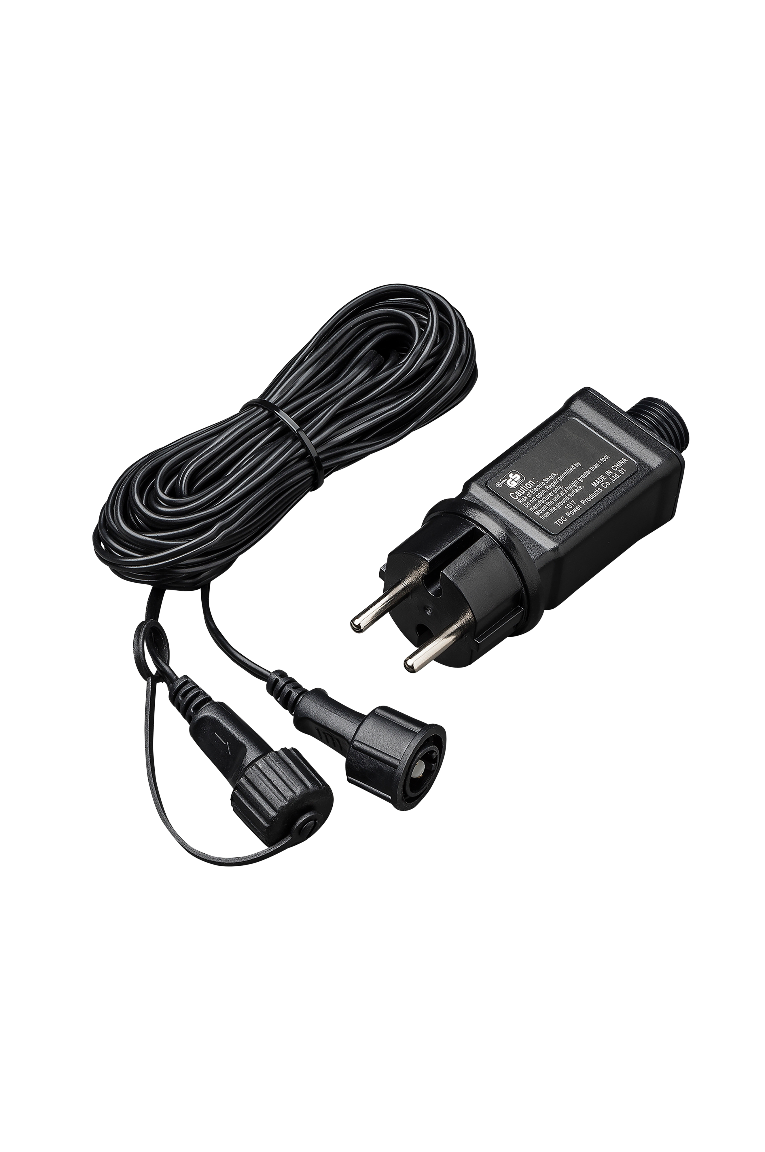 Startsæt til 31v-system inkl. transformer. Kan udvides til 1040 led-lys eller 100 m. Sort "blødt kabel". Længde 5 m.