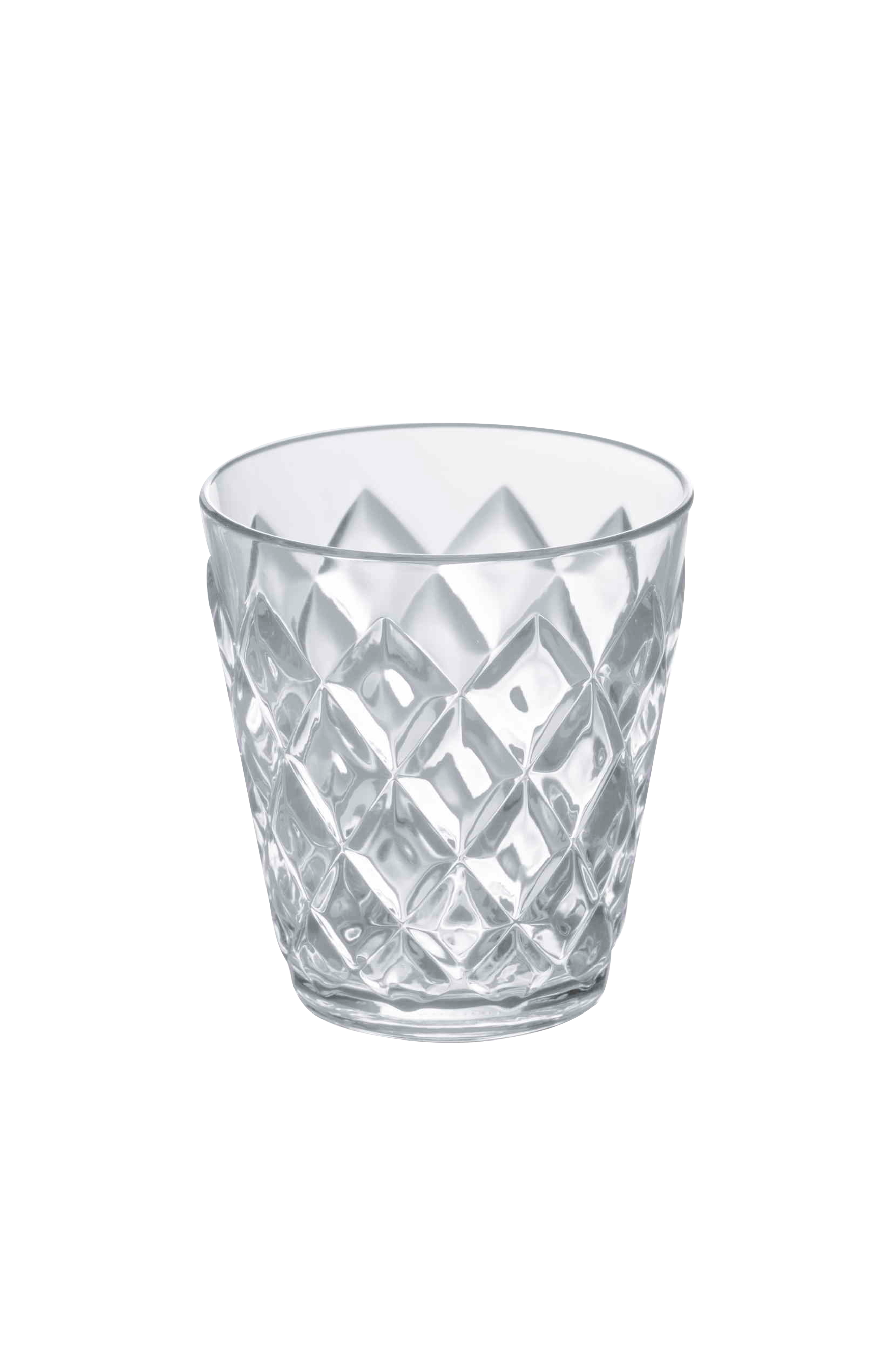 fra Koziol i Crystal-serien, der med sin slidstærke plastik kan klare enhver begivenhed. Crystal small har en facetteret overflade, der gør dette til et funklende, smukt glas, samtidig med at det er meget behageligt at holde om. Glasset har isolerende egenskaber, der gør, at du kan nyde både varme og iskolde drikke i lang tid.