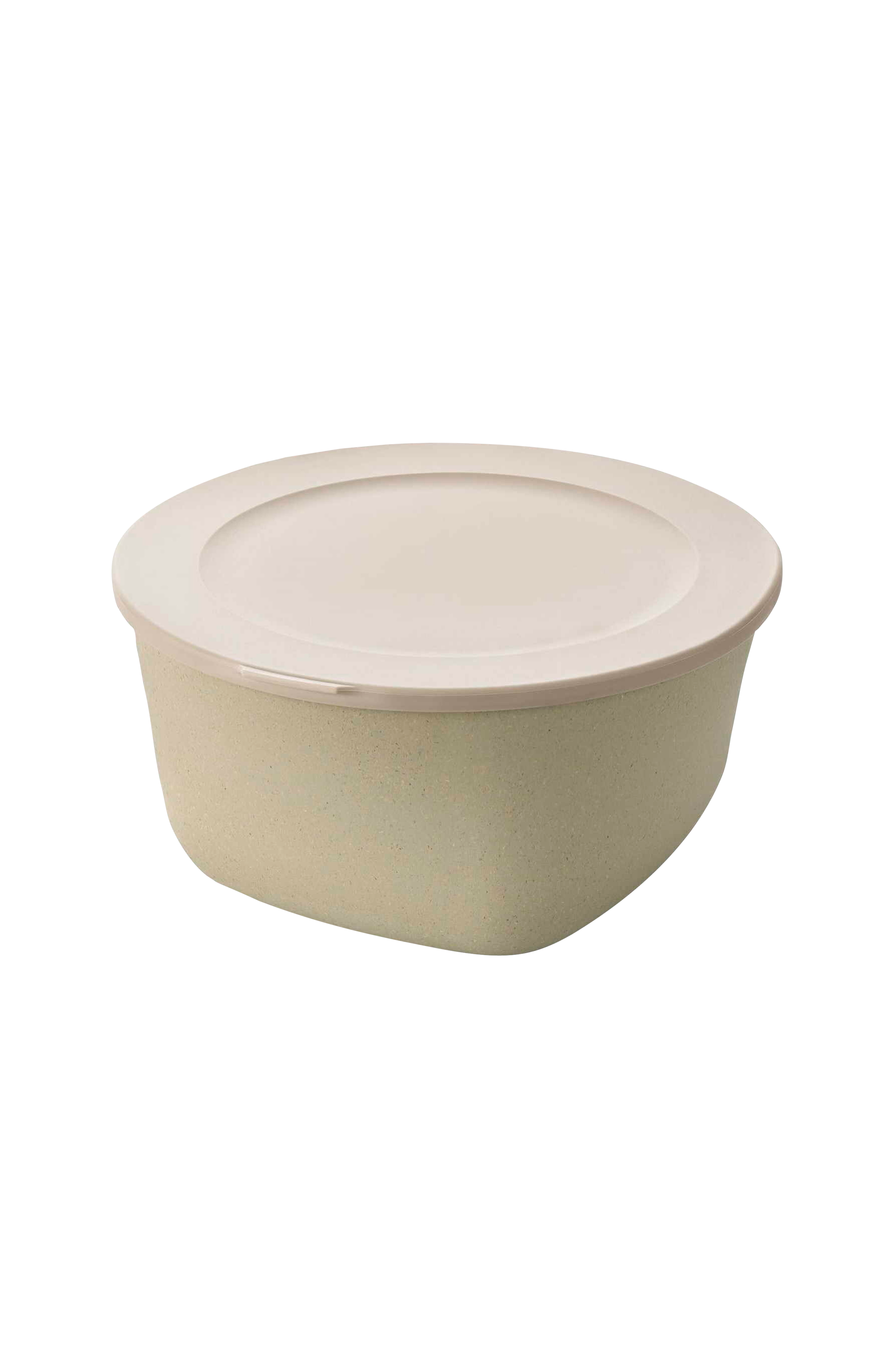 Connect skål med låg holder snacks og tilbehør frisk i lang tid og er simpelthen perfekt til en sund frokost. Skålen har en firkantet base, hvilket gør den ekstra stabil. Låget åbner og lukker meget nemt og holder tæt, så alt holder sig frisk og sprødt i lang tid og kan transporteres uden besvær. Materiale: termoplast og træfiber. 100% genindvundet materiale, 100% genanvendeligt. Volumen: 4 l