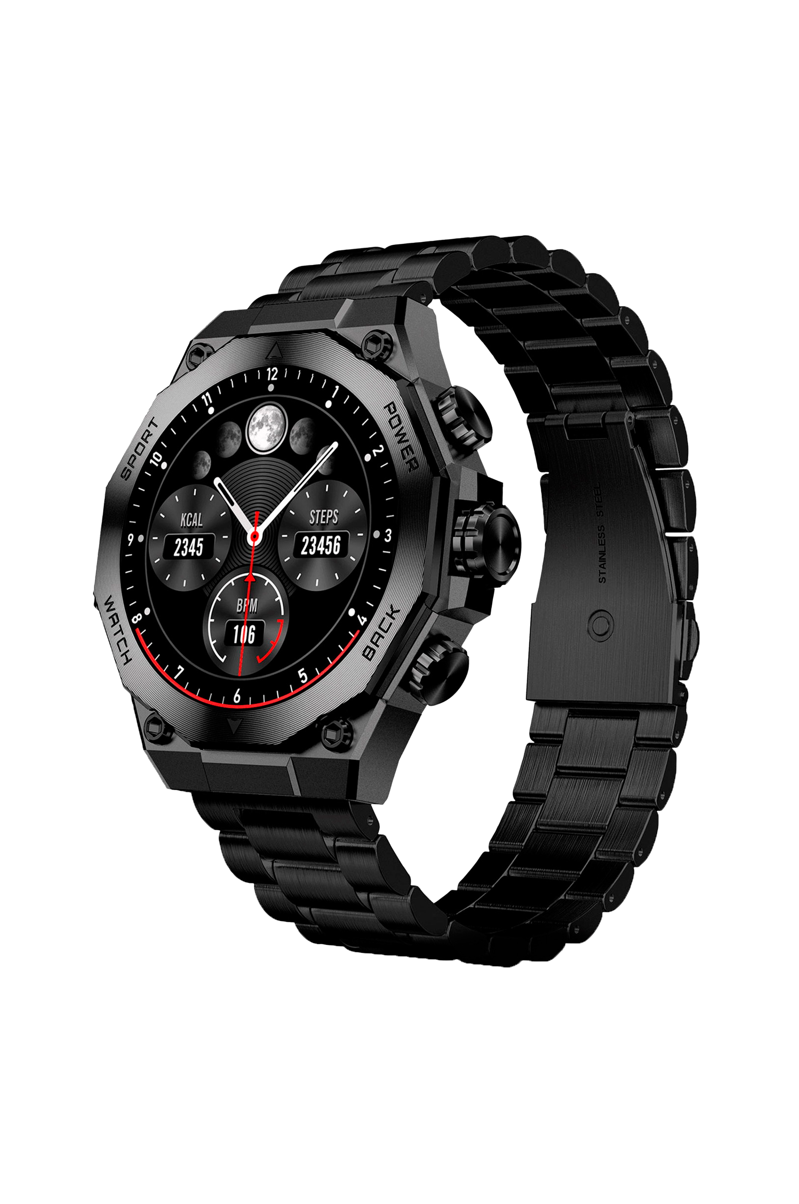 Det leveres med to udskiftelige remme: en sporty silikonerem og et elegant armbånd i rustfrit stål, hvilket gør det perfekt til både hverdag og mere sofistikerede lejligheder.