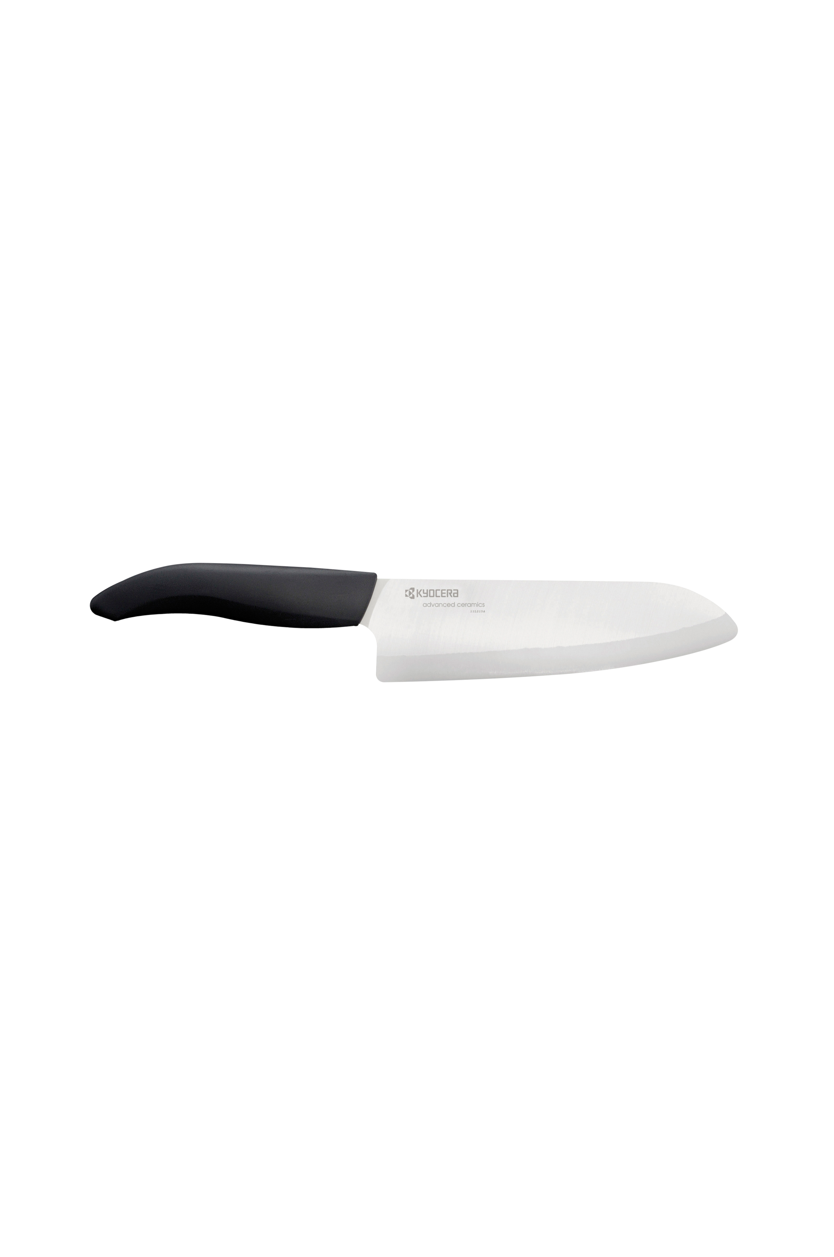 Keramisk kokkekniv med et højt blad, der giver plads til knoerne. Når den skal slibes, kan man bruge et diamantblad. En keramisk kokkekniv ruster ikke og påvirkes ikke af syrer. De tåler også opvaskemaskine. Kniven kan bruges til næsten alt, men undgå hårde skaldyr, knogler og frosne fødevarer.
