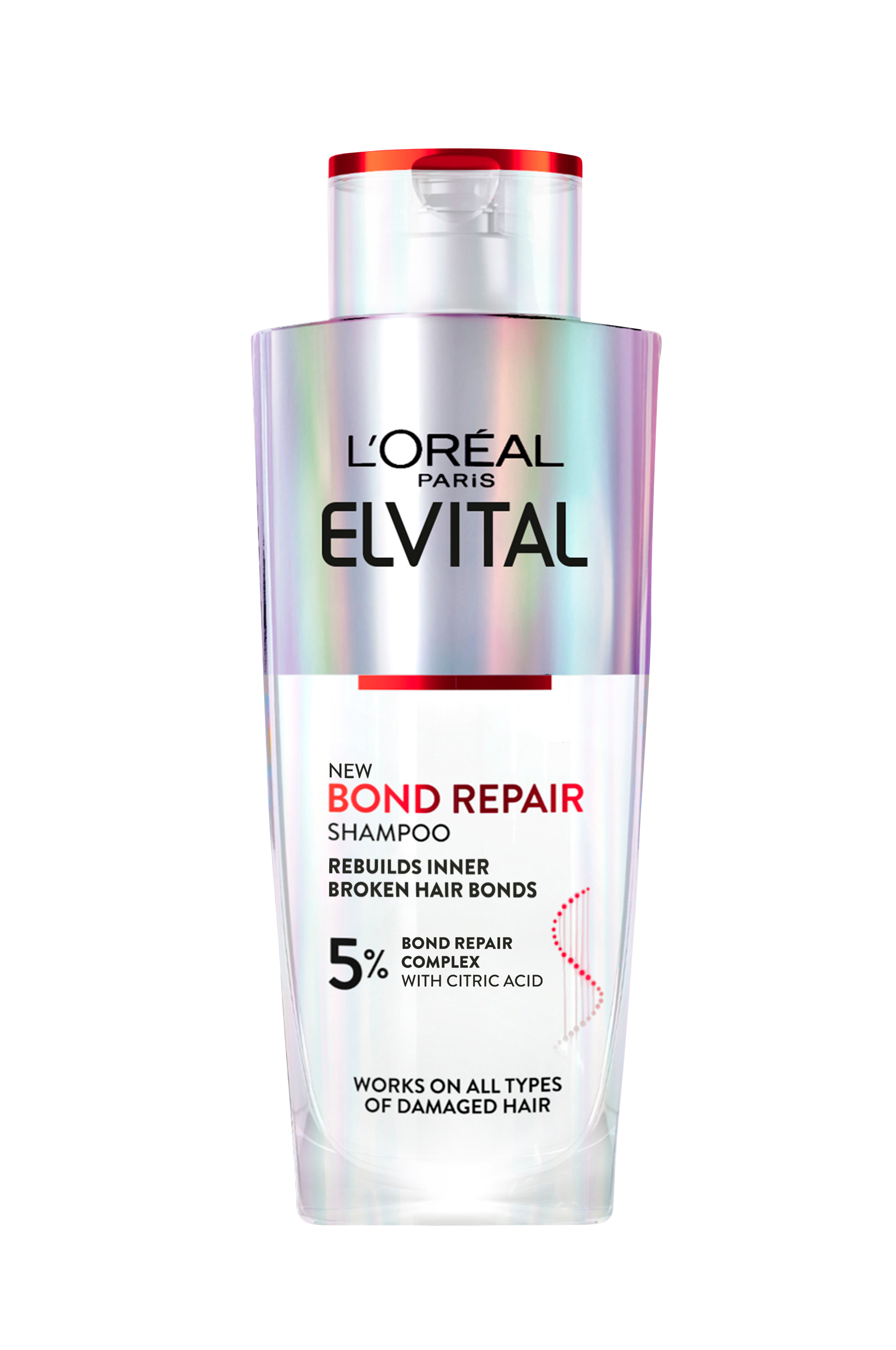 Elvital Bond Rescue Shampoo er en shampoo til alle typer skadet hår. Denne hjemmebehandling genopbygger bindinger i hårets struktur og reparerer hårstrået fra skallag til cortex. Et hårstrå består af millioner af bindinger, der giver det struktur og styrke. Når vi stresser håret gennem børstning, blegning, varmeredskab og farvning, bliver hårstrået svagere og beskadiget, efterhånden som bindingerne går i stykker. Formlen i Bond Repair-serien fra Elvital er beriget med citronsyre og trænger ind under skallaget til hårets cortex for at hjælpe med at styrke og genopbygge beskadigede hårbindinger.