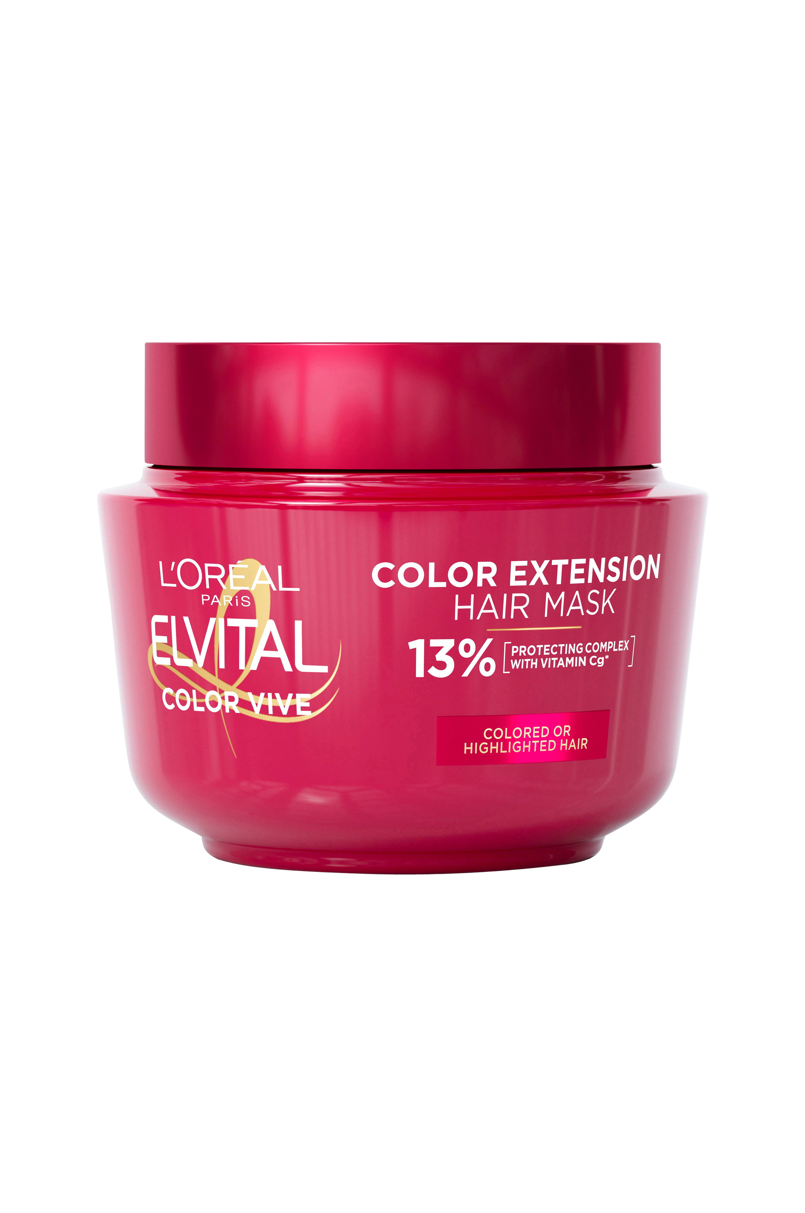 L'Oréal Paris Elvital Color Vive mask er en farvebeskyttende og plejende hårmaske - perfekt til farvet hår eller hår med highlights. Formlen er beriget med vitamin Cg** for at forlænge farveintensitetens holdbarhed med op til 40 hårvaske*.