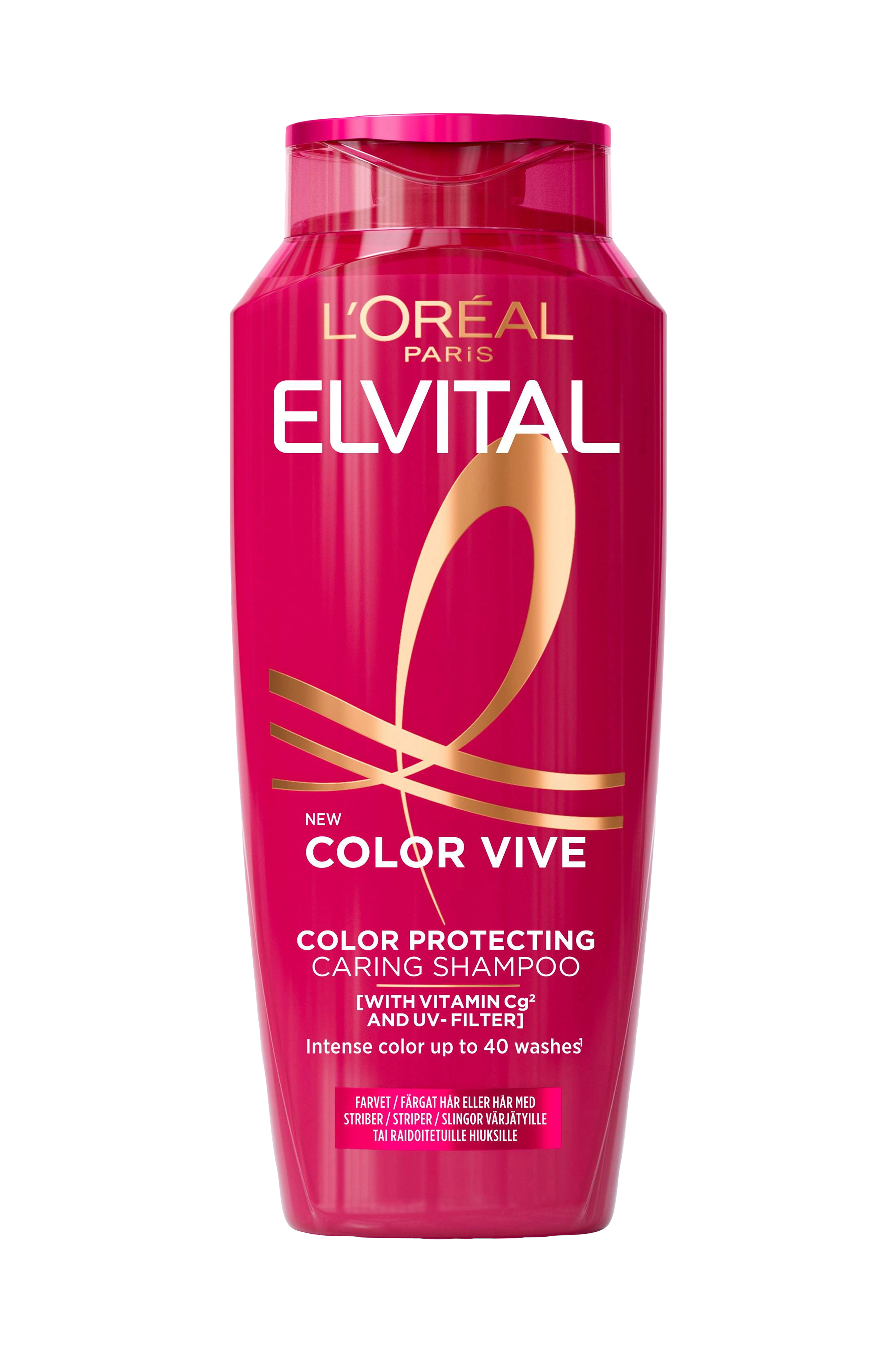 L'Oréal Paris Elvital Color Vive shampoo er en farvebeskyttende og plejende shampoo - perfekt til farvet hår eller hår med highlights. Formlen er beriget med vitamin Cg** og UV-filter og forlænger farveintensitetens holdbarhed med op til 40 hårvaske*