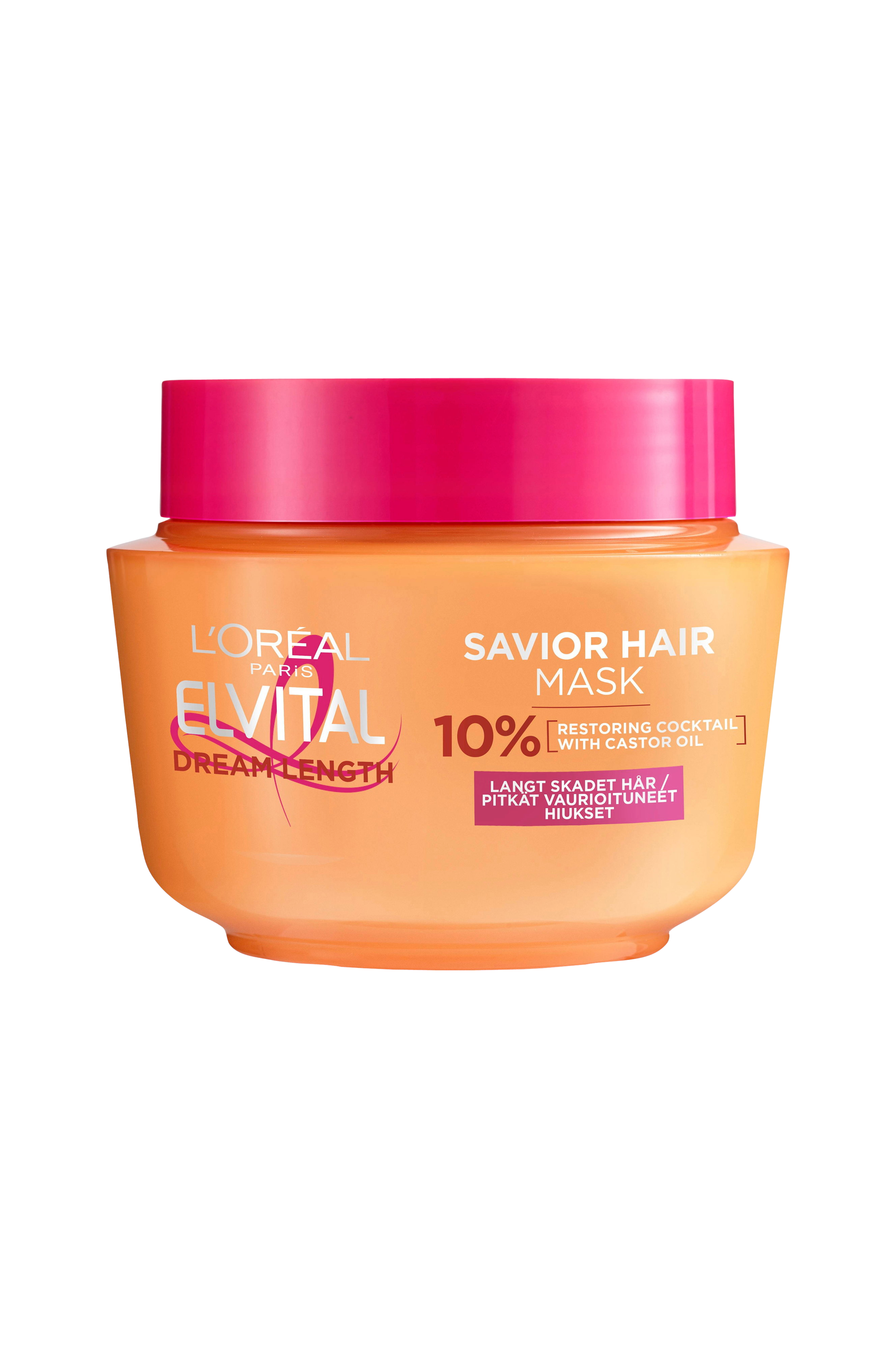 L'Oréal Paris Elvital Dream Lengths Savior Hair Mask er en genopbyggende hårmaske som hjælper dig at redde de sidste 3 centimeter. En hårmaske til dig med langt og skadet hår. Med en plejende formel som intenst reparerer længderne og er beriget med vegetabilsk keratin, vitaminer og ricinolie. Ikke flere tynde, spaltede spidser - kun langt, glansfuldt hår som føles næret og stærkere*.