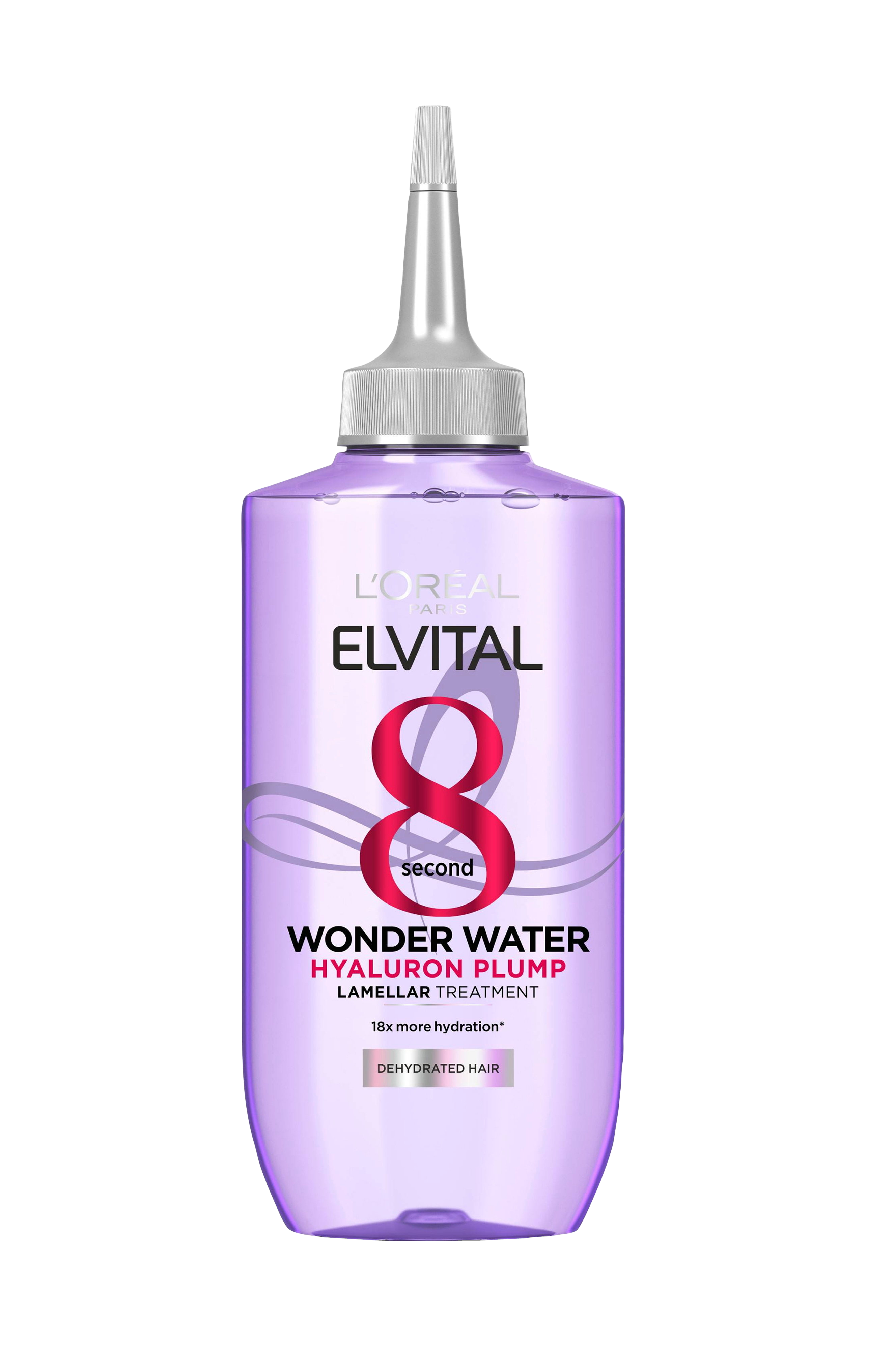 Elvital Hyaluronic Plump Wonder Water Lamellar Treatment. For at revitalisere og intenst fugte dit hår. Giver glans* og gør håret 18X mere fugtet*. Formel uden silikone for en naturlig følelse. *Instrumentelle tests