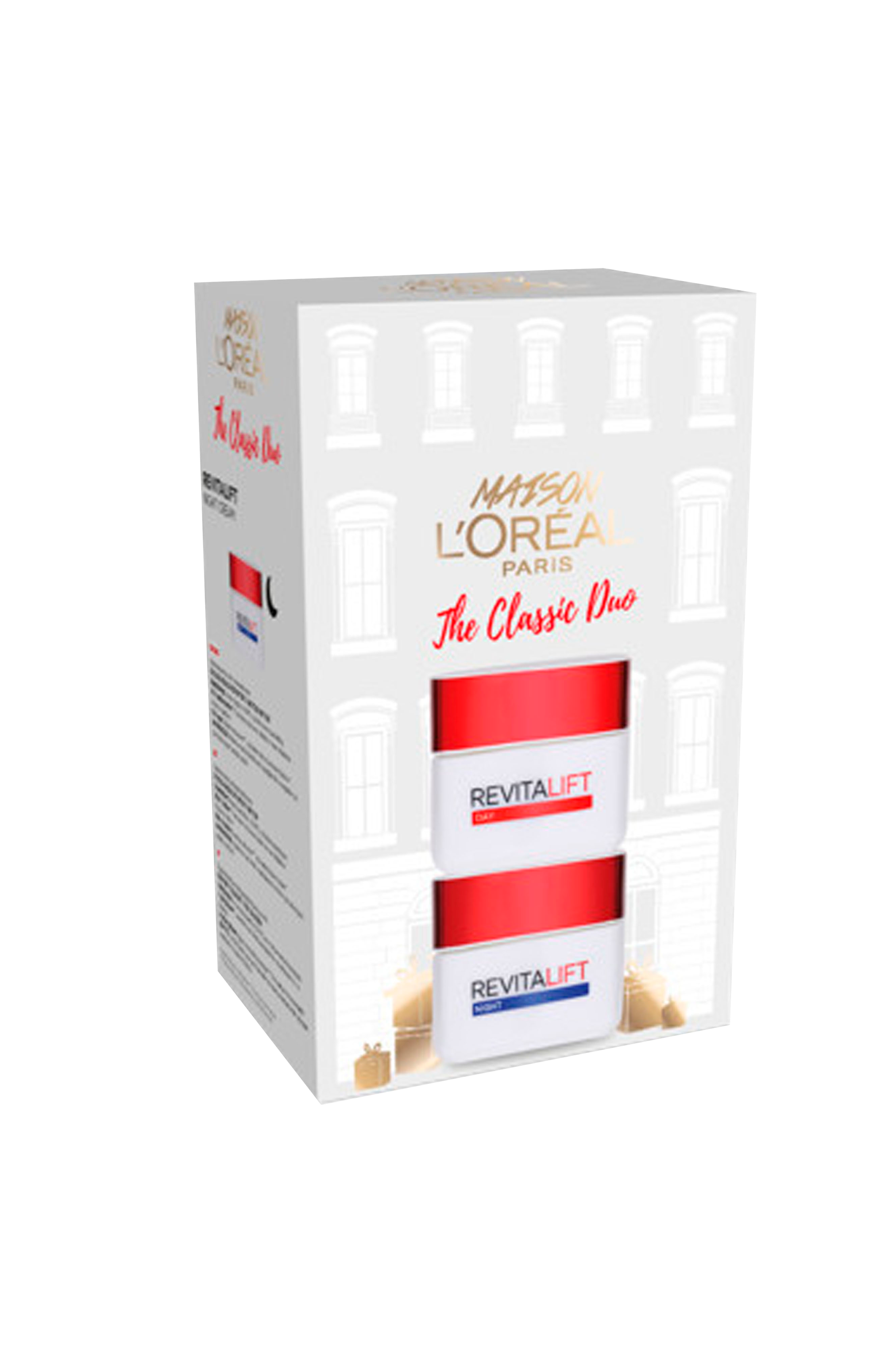 Gavesættet indeholder:- L'Oréal Paris Revitalift Classic Day Cream 50 ml.- L'Oréal Paris Revitalift Filler Night Cream 50 ml.