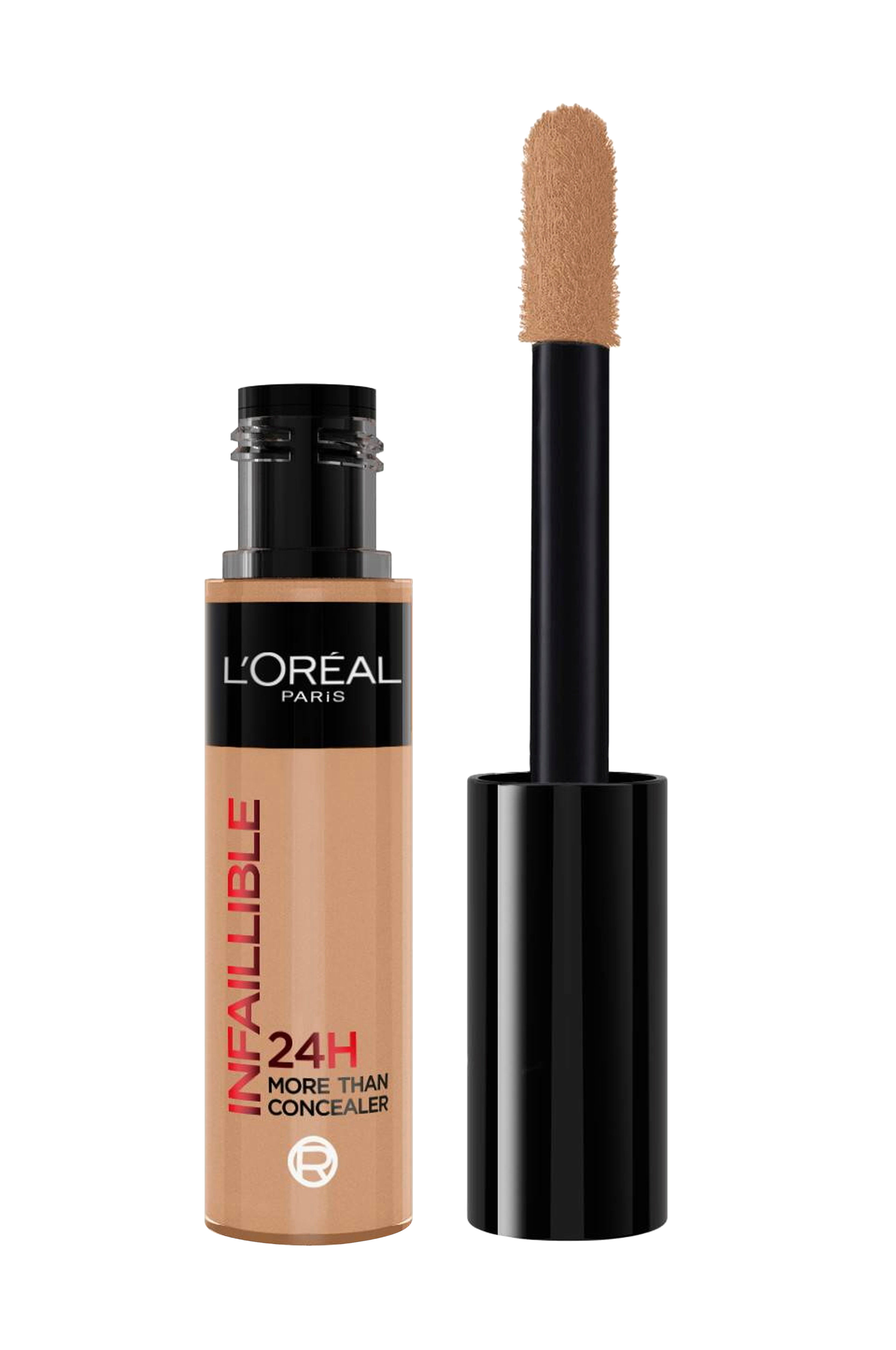 L'Oréal Paris Infaillible More Than a Concealer er en heldækkende concealer, som holder i 24 timer og føles let. Formlen har et højt indhold af pigmenter for maksimal dækkeevne og en blanding af olier for en behagelig og nem påføring samt fugt. Bliver siddende hele dagen uden at klumpe eller sætte sig i fine linjer. Supersize applikator gør det nemt at påføre concealeren på både målrettede eller større områder.